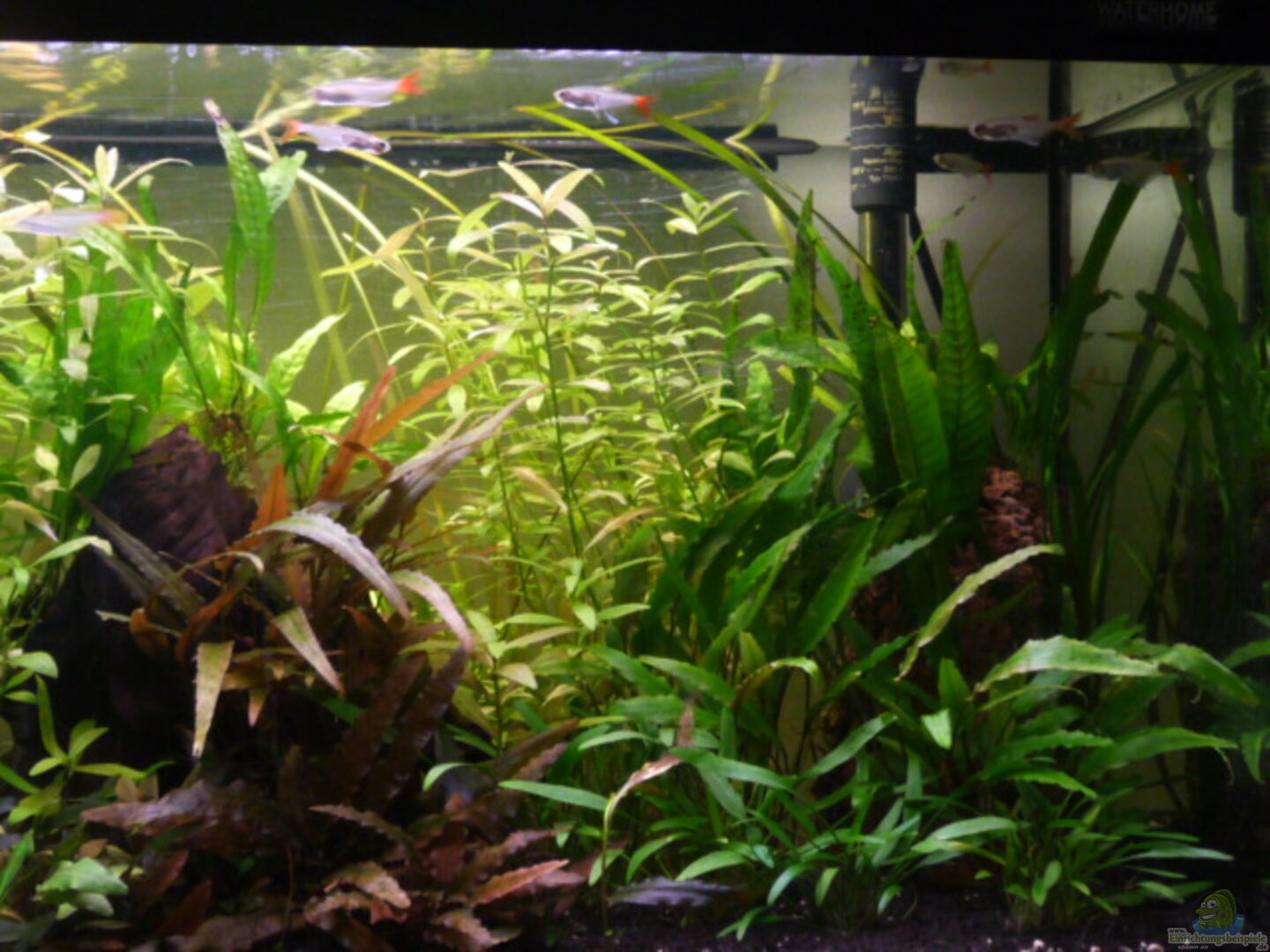 Lichtreflektor selbst zurechtgeschnitten aus Spiegelpapier (die Standartreflektoren waren nicht mehr zu gebrauchen). Auch bei diesem Becken wurde darauf geachtet, Pflanzen zu verwenden, die auch mit weniger Licht auskommen, trotz mehr Leuchtkraft durch 2 Röhren.