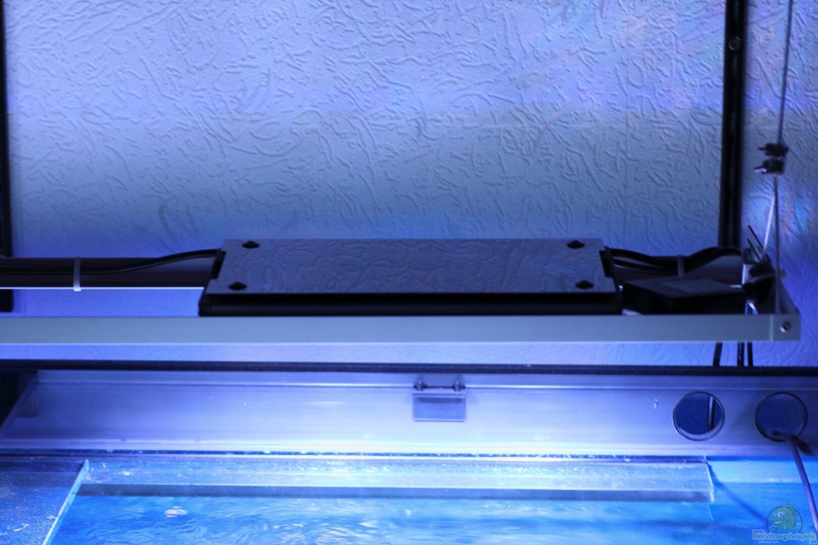 Strömungspumpen: 2 * TUNZE Turbelle nanostream 6055 - steuerbar für Aquarien von 40 - 500L Strömungsleistung: 1000 bis 5500l/h Energieverbrauch: 4 bis 18 W Ausgesteuert über ProfiLux Plus II Beide Pumpen arbeiten gegenläufig verlaufend in Sinuswellenform, sodass es eine permanent wechselnde Strömung ergibt. Wellendauer: 10 s Tagmodus: 7:30 Uhr bis 22:00 Uhr Intensität verlaufend in Sinuswellen: 20 % - 100 % Nachtmodus: 22:00 Uhr - 7:30 Uhr Intensität verlaufend [...]