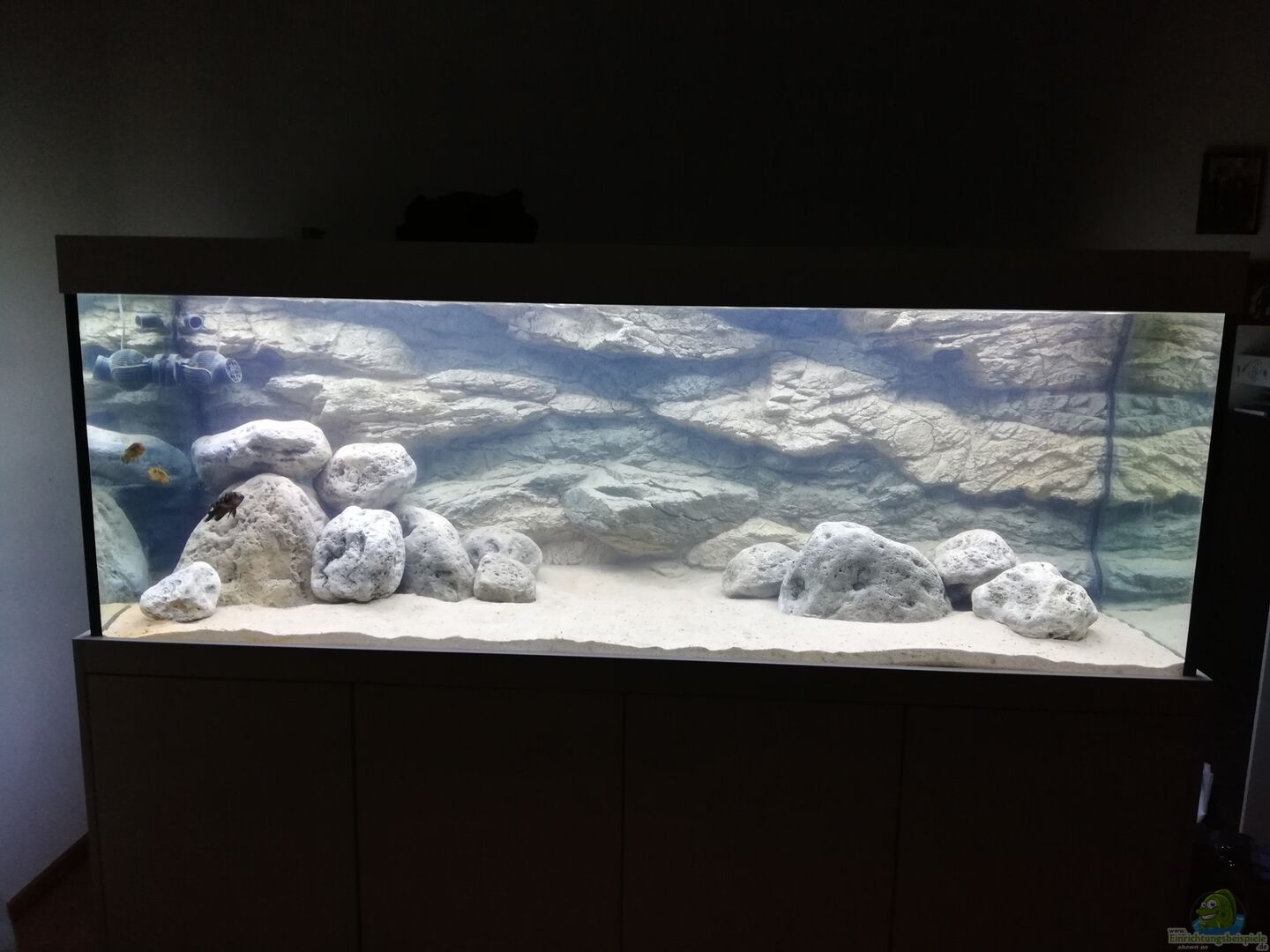 Das Aquarium ist eine individuelle Anfertigung von der Firma Aquarienkontor aus Haltern am See. Die Frontscheibe ist Opti-White-Glas. Die Aquarienanlage die Kombination "Prestige" von Aquarienkontor, aus Unterschrank, Becken, Abdeckung, Rückwandfilter und LED-Beleuchtung.