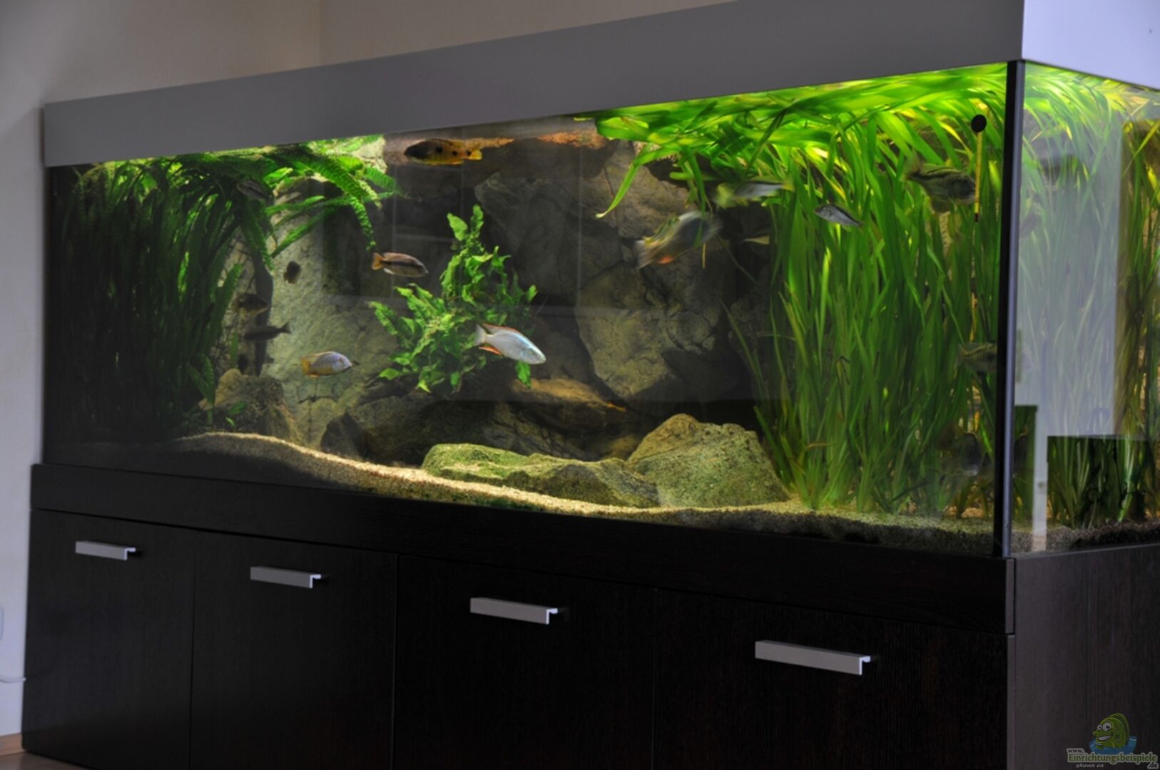 ??berlaufschacht auf BTN Modul mit zwei Bohrungen. (Ein- und Ablauf Aquarium der Fa. Meyer Aquarientechnik MAT. Becken läuft seit 15.07.09. Schrankuntergestell vom Schlosser fertigen lassen und anschlie??end mit Holz wenge verkleidet. Abdeckung ist aus Aluminiumblech in RAL 9006 lackiert. Abdeckscheiben sind verschiebbar.