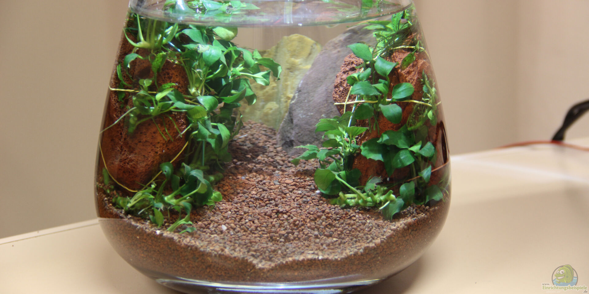 Kugelförmige Vase stand ungenutzt rum und wollte gefüllt werden ...mit Wasser. Nach der Auflösung nun emers bepflanzt, Bilder folgen...