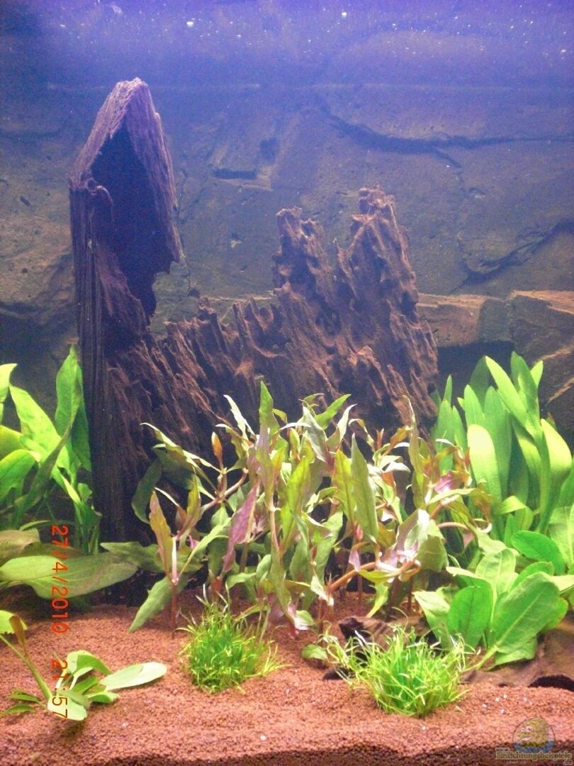 3D-Rückwand 5 Wurzeln, davon eine als Unterstand für die Skalare direkt an der Wasseroberfläche. 4 Höhlen aus Stein und Schiefer.