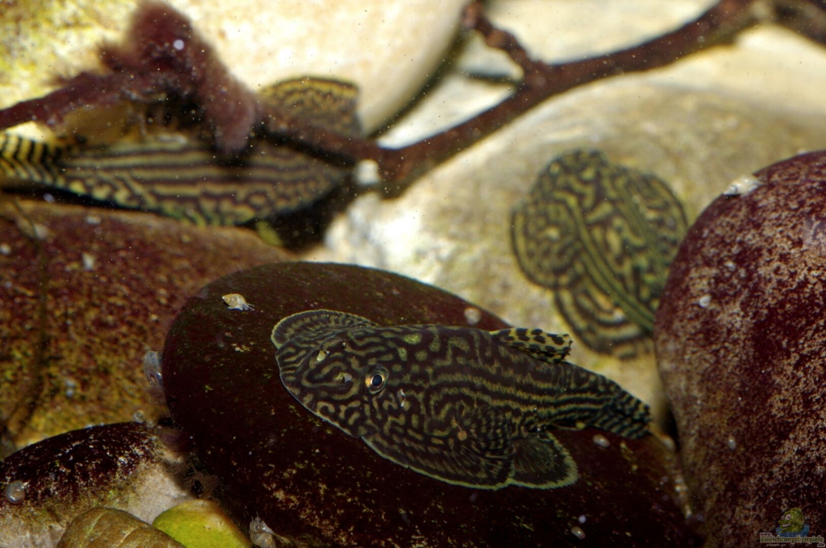 *** 3/3 Sewellia lineolata (WF) - Prachtflossensauger (+ Nachwuchs seit Oktober 2012) Grö??e: von 5 bis 6 cm (Ursprünglich waren es 8 Tiere. 2 verstarben in der ersten Woche nach dem Einsetzen. Ein Tier hatte eine heftige bakterielle Infektion. Das Zweite habe ich nach 2 Tagen nicht mehr gesehen. Ich kann mir vorstellen, dass es das selbe Schicksal erlitt wie das andere und irgendwo zwischen den Steinen sein Ende gefunden hat.) Eingewöhnungszeit Tagsüber sind meine Flossensauger [...]
