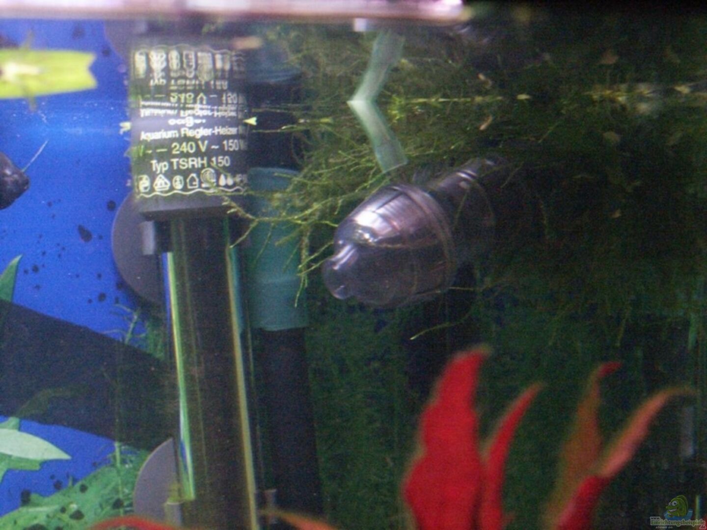 Jäger Heizer 150W Eheim Diffusor als Ausströmer am CP120 angeschlossen.Läuft aber nur Nachts mit Luftblasen. Teratec UV Klärer UV 400 (5 Watt) am CP 120 angeschlossen hinter Aussenfilter. CO² Anlage von Rondex mit Flipper und Nachtabschaltung. CO² Mehrwegflasche (500gr).