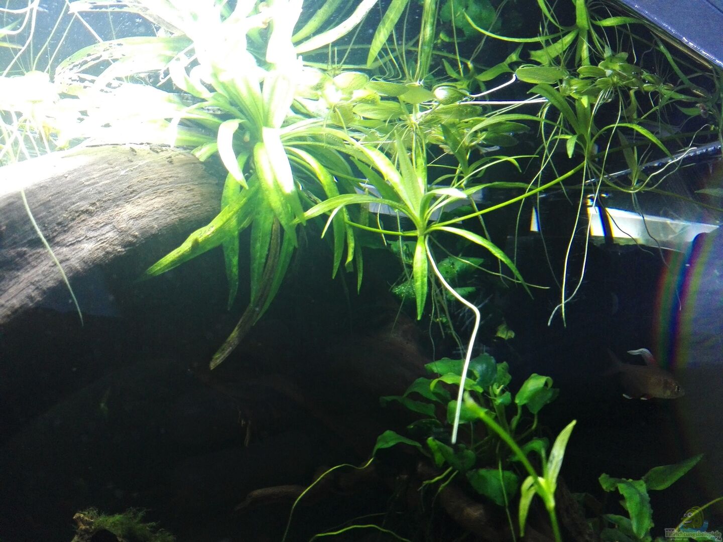 Folgende Pflanzen sind im Becken eingesetzt: Helanthium Quadricostatus 068 ES Typ: Zwergamazonaspflanze Herkunft: Südamerika Lichtbedarf: mittel pH-Wert: 5, 8 bis 7, 5 Wasserhärte: sehr weich bis hart Wassertertemperatur: 20 bis 28° C Limnobium laevigatum 063 TC Typ: Schwimmpflanze Herkunft: Südamerika Lichtbedarf: mittel bis hoch pH-Wert: 6, 0 bis 8, 0 Wasserhärte: sehr weich bis hart Wassertertemperatur: 10 bis 28° C Anubias nana Typ: Aufsitzerpflanze Herkunft: [...]