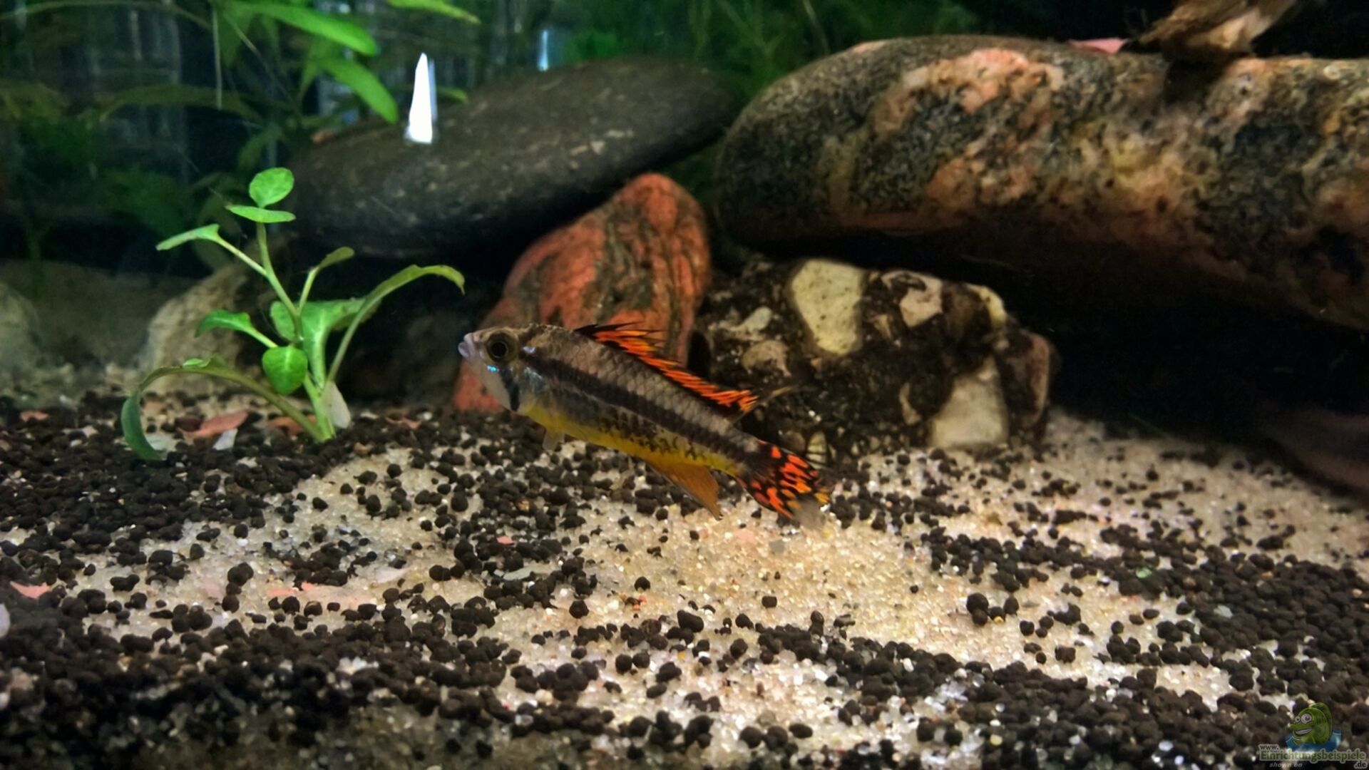 - 1m/1w Apistogramma cacatuoides - Kakadu Zwergbuntbarsch - 1x Corydoras aeneus - Metallpanzerwels - 6x Hasemania nana - Kupfersamler - 6x Hyphessobrycon herbertaxelrodi - Schwarzer neon - 1x Zebrarennschnecke - Posthornschnecken (mit Pflanzen eingewandert) - Die 12 Salmler bilden einen gemischten Schwarm und harmonieren gut miteinander - Der Panzerwels (eigentlich ein Schwarmfisch) ist aus einem Restbestand übernommen und schon etwa 9 Jahre alt. Da er nun schon "pensioniert" [...]