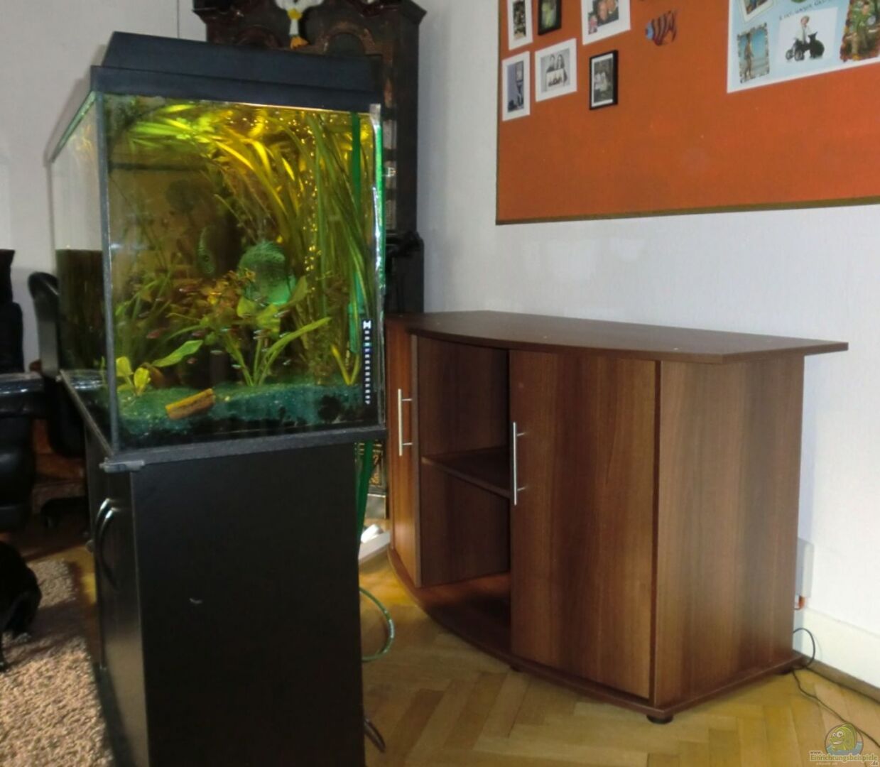 Aquarienkombination Juwel Vision 450 in dunkelbraun eingeklebte Rückwand von Back to nature, Typ Slim line, Farbe Heller Sandstein, Elemente von links nach rechts 60A, 60B und 60A, den rechten zurechtgeschnitten und den übrigen Rest von vorn an den Innenfilter geklebt. Das verwendete Silikon ist von JBL, damit also speziell für Aquarien. Der Innenfilter sollte ursprünglich raus, da er meiner Meinung nach zuviel Platz wegnimmt. Allerdings ist nach meinen letzten Infos der Abstand zwischen [...]