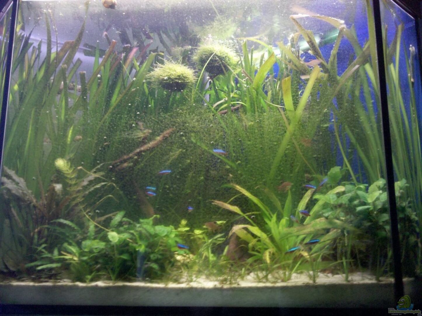 Um die gro??e Höhe etwas zu überbrücken, habe ich streifen aus Plexiglas geschnitten (vorderseite geschwungen). Diese dann mit Kies beklebt und diese als Terrassen an den beiden Rückwänden mit Lebensmittelsilikon installiert. Anschlie??end auf jede einzelne Terrasse Javamoos gebunden (mit Angelschnur).