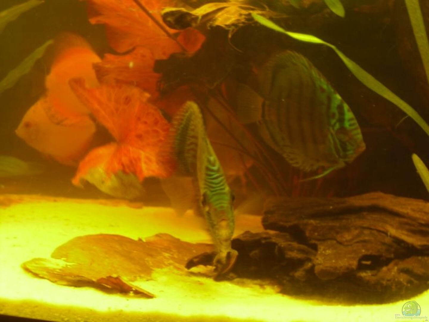 4 Diskus (2x Brillianttürkis, 1x Blue Diamond, 1x Rot-Orange) 16 Panzerwelse 1 Antennenwelse w 5 Ohrgitterharnischwelse 2 Schmetterlingsbuntbarsche (Pärchen) 5 Neonsalmler (werden nicht mehr aufgestockt)