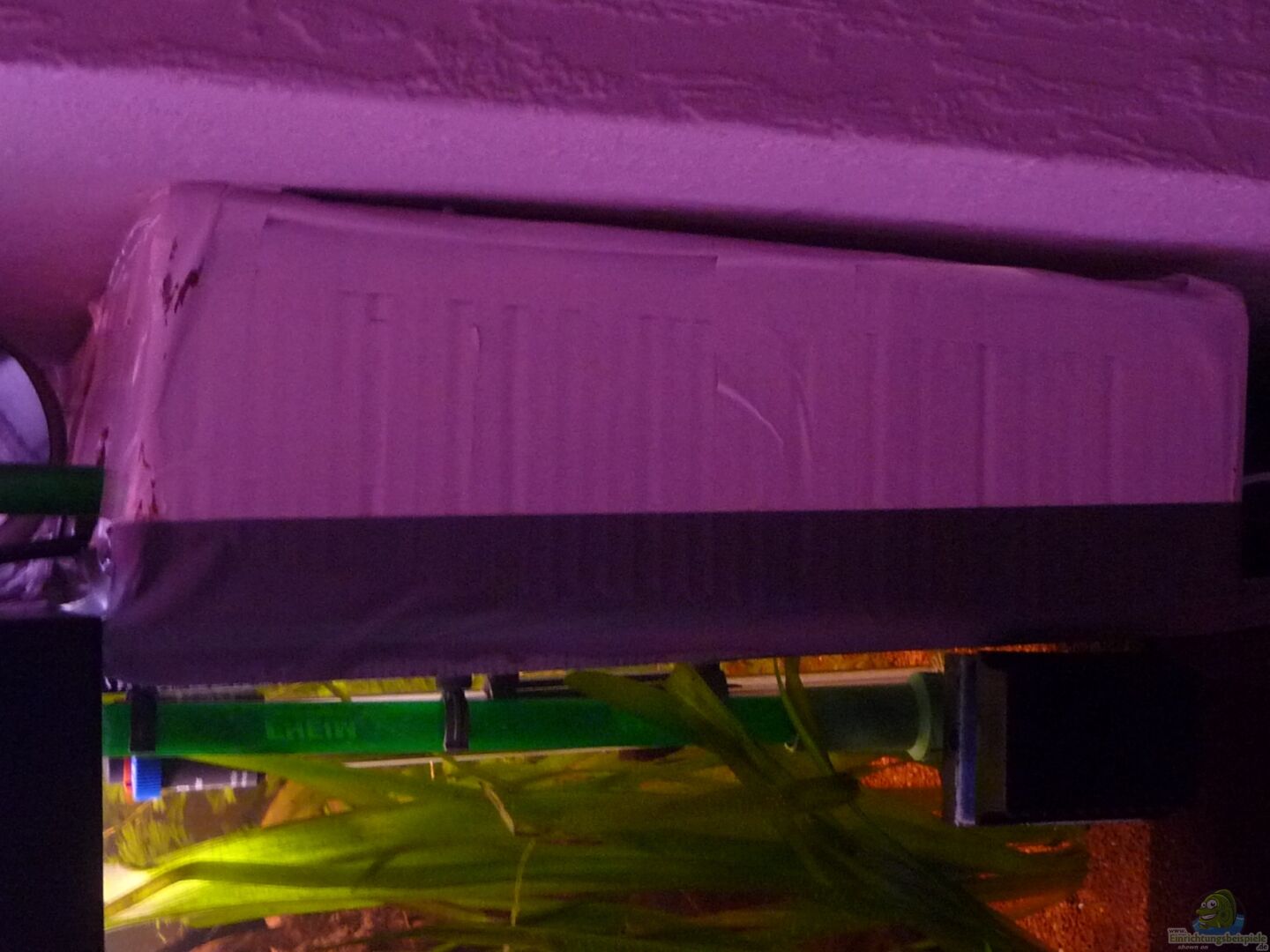 Das Aquarium ist von der Marke Hagen und hat eine Gebogene Frontscheibe (an den seiten 40cm Breit und in der mitte 50cm breit). Die Hintergrundscheibe ist beklebt mit milchiger Folie (ist eigentlich für badezimmer gedacht). Hinterm Aquarium habe ich einen selbstangefertigten Karton geklebt. Im Karton ist eine 1m lange LED-Stripe verbaut. Die LED´s wurden als Nachtlicht eingestezt. !!! Hintergrund wurde gegen Schwarze Folie getauscht, bilder bleiben als Beispiel!!!