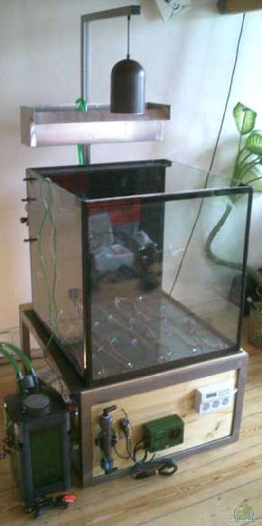 Kubus - von 3 Seiten einsichtig (Rückseite schwarz) offen externes Pflanzenbecken, wird über Bypass vom Au??enfilter mit Wasser versorgt & hat einen ??berlauf ins Becken Ersteinrichtung: 04.12.2004 Neugestaltung: 21.10.2011