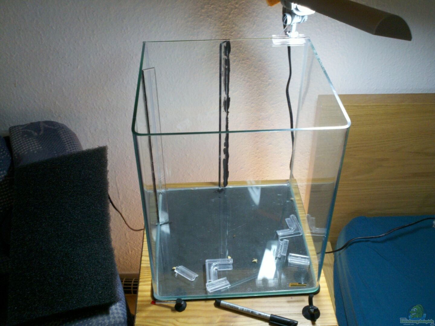 1x mangroven Wurzel im Hintergrund 3x Lavasteine in der Mitte des Beckens Naturschieverplatten an der hinteren Scheibe als Rückwand