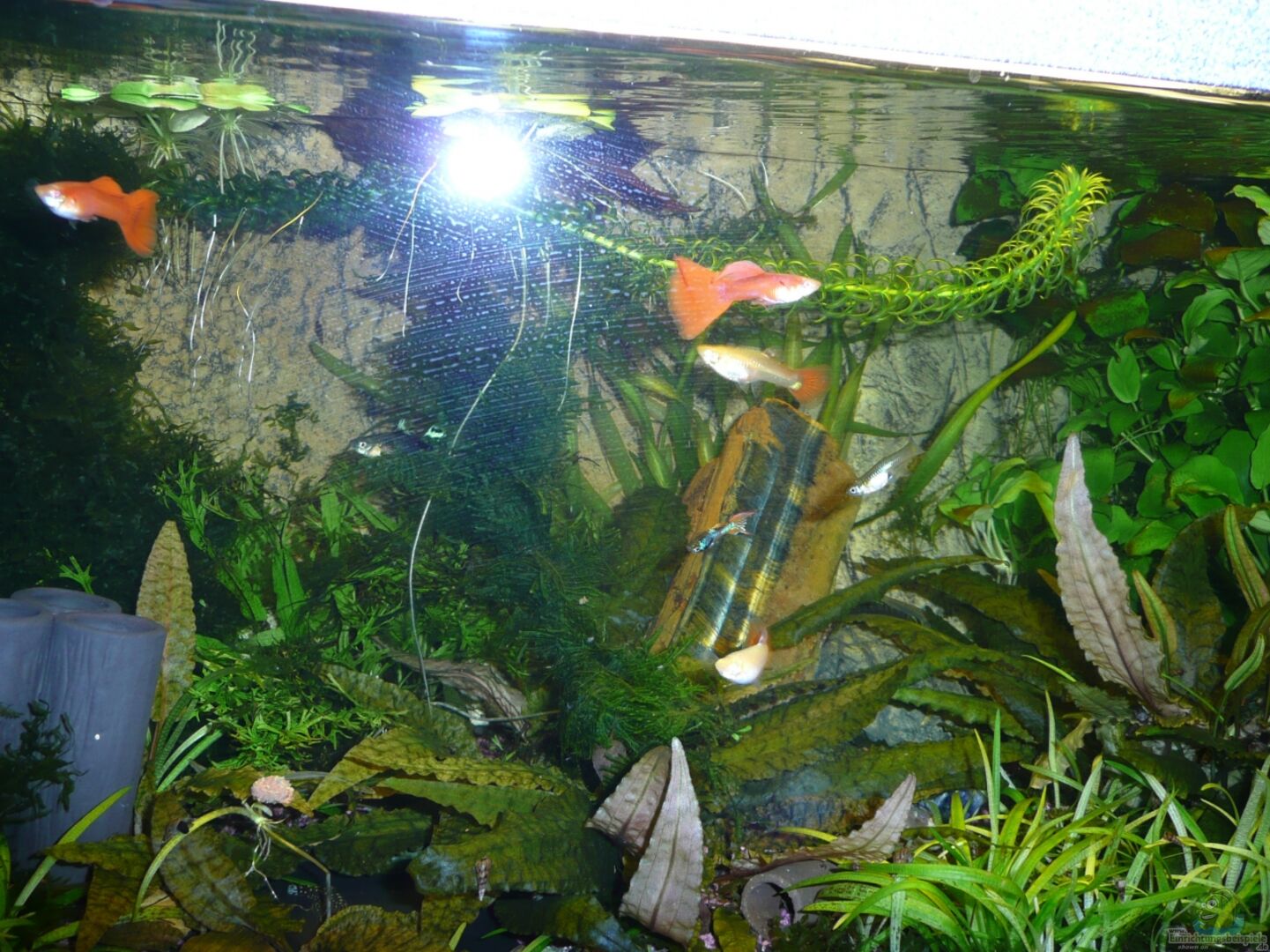 2 paar Hochzuchtguppys Red-Albino, 1 Paar EndlerGuppys 2x Flossensauger gepunktet 1x gestreift 2 Fächergarnelen (Molukken) Restbestand Redfire/Sakura Garnelen TDS Malayische ??bergangsweise 5 Pandazwergschmerlen (sollen bald in mein neues Becken einziehen - dauert aber noch ein paar Wochen bis ich es habe und aufstellen kann)
