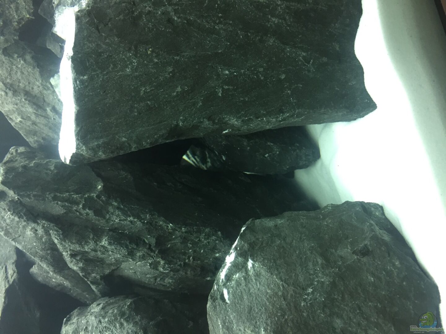 Es dürften inzwischen an die 80 Kilo Gestein sein, Wertach Bruchstein und graue Basalt Rundsteine. Es gibt's somit sehr viele kleine und grö??er Spalten und Höhlen