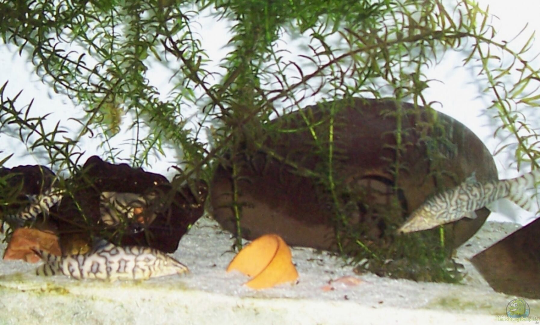 Hier finden Sie Einrichtungsbeispiele für Aquarien, die mit Fiederbartwelsen der Art Synodontis multipunctatus (Vielpunkt-Kuckuckswels) besetzt sind.