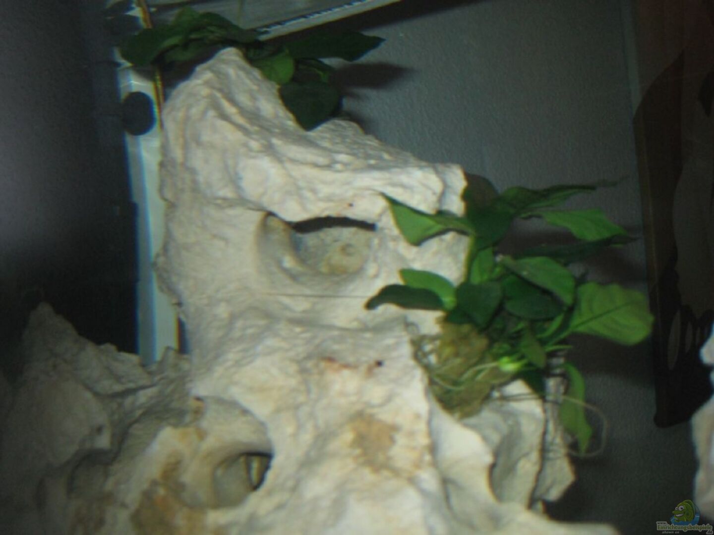 Styroporplatte 1 cm über die gesamte Bodenfläche Mehr als 70 Kg Lochgestein und 1 gro??er künstlicher Stein 2 halbe Kokosnüsse mit Loch