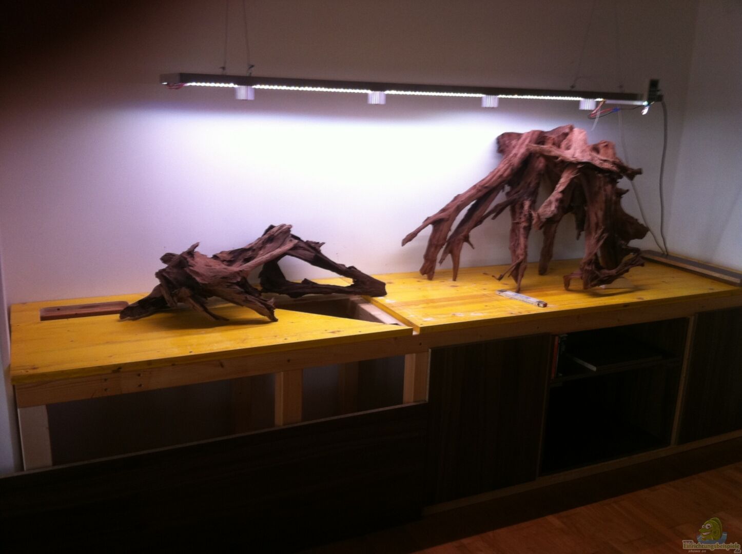 Gro??e und kleine Wurzeln. Diverse einzelne Steine mit Tonröhren kombiniert. Dazu wird Flie??enmörtel verwendete. Es sollen Steinhaufen mit Höhlen entstehen, welche mit Sand bestreut runder in das Gesamtbild passen sollen als rohe Tonröhren! Die Holzwurzeln wurden nun einmal in verschiedenen Varianten angeordnet. Ich habe euch mal ein paar Bilder hochgeladen, damit schon einwenig der Eindruck entstehen kann, wie ich mir das ganze vorstelle. Bin gespannt auf das Feedback.