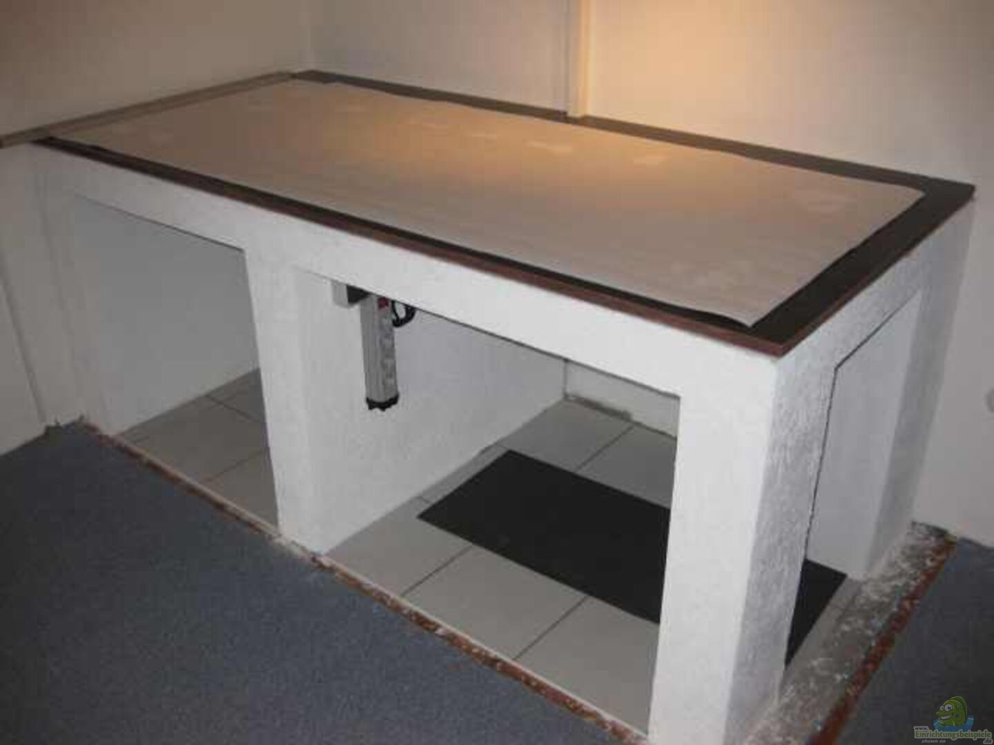 =================================================== Unterbau: Der Untergrund musste neu betoniert werden. Darauf mauerten wir das Untergestell mit 15 cm starken Kalksandsteinen. Als Träger nutzten wir Fensterstürze. Die komplette Unterkonstruktion wurde mit wei??em Rauputz verschönert. Um Unebenheiten auszugleichen wurde über die ganze Fläche Laminatdämmung geklebt. Die Unterplatte ist eine 2 cm starke Birken-Betonschalungsplatte, die nochmals mit Laminatdämmung, zum Ausgleichen von [...]