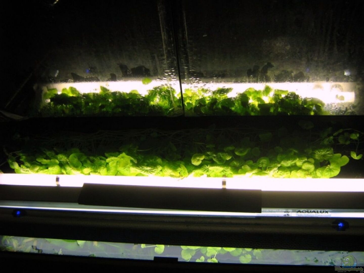 - Anubias barteri var. nana - Ceratophyllum demersum - Didiplis diandra - Echinodorus cordifolius - Echinodorus tenellus - Eusteralis stellata - Hydrocotyle leucocephala - Hydrocotyle verticala - Lysimachia nummularia - Microsorium pteropus - Vesicularia dubyana auf dem Düsenrohr des Filters gebunden