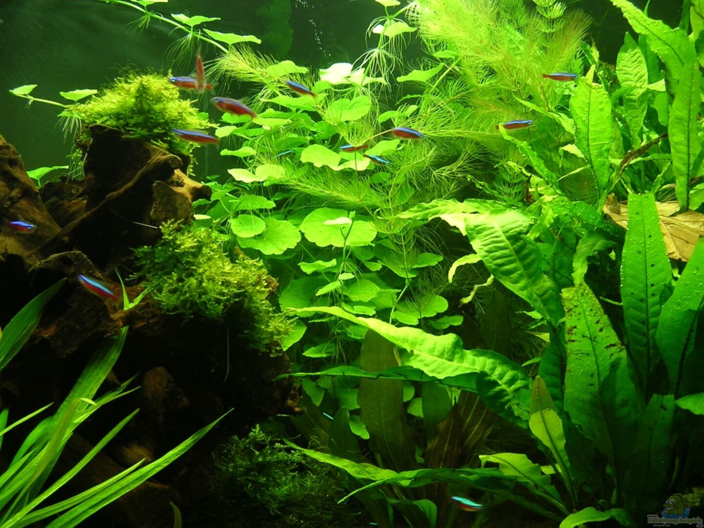 1x Echinodorus `Red Rubin` 1x Echinodorus `Red Flame` 8x Helanthium tenellum (Echinodorus tenellus) Grasartige Zwergschwertpflanze 4x Hydrocotyle leucocephala Brasilianischer Wassernabel, Wasserefeu 2x Hygrophila polysperma Indischer Wasserfreund 3x Microsorium pteropus Schwarzwurzelfarn, Javafarn 2x Sagittaria pusilla Zwergpfeilkraut; am19.09.2011 eingezogen 1x Vesicularia dubyana Javamoos ca. 10 Erlenzäpfchen (Amtra) und 3 Seemandelbaumblätter (Dennerle) alle 2-3 Wochen neu Düngung: [...]