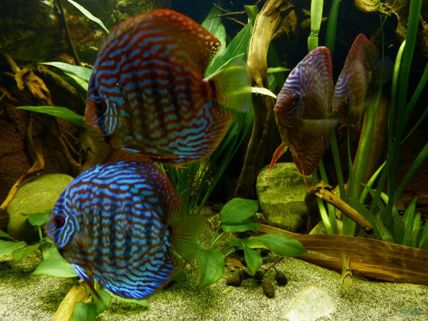 Fische: - 5 Symphysodon aequifasciatus "Rot-Türkis" ( Diskus Buntbarsch ) Beschreibung: Der Diskus wird auch als der "König der Aquarienfische" bezeichnet. Die Tiere fallen durch ihren flachen, runden Körper und die ruhige Schwimmweise auf, dies wirkt sehr majestätisch. Das natürliche Verbreitungsgebiet des Diskus liegt im Amazonas-Einzug, Peru, Kolumbien und Brasilien. Von verschiedenen Fundorten wurden leicht unterschiedlich gefärbte Tiere dazu genutzt [...]
