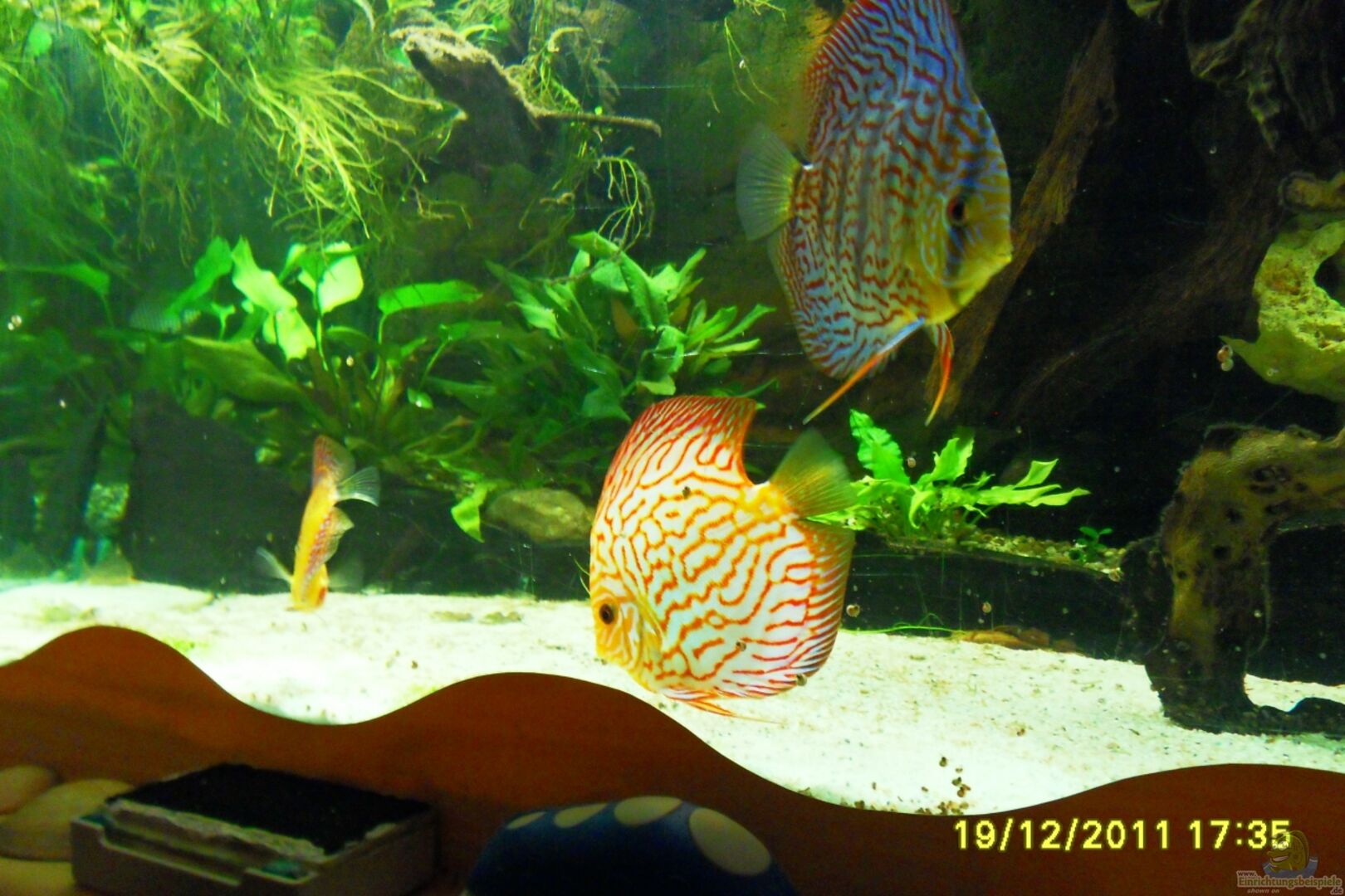 20 Diskus, ( Rottürkis, Fächig Snake, Pigemon Blood , Malboro Red, Brilland Türkis, Red Skibbelt, Santadrem, Blue Diamond, Snake Skin Rot, Kobalt Blau, Flächen Turkis, Alenquer, Golden Leopard Snake Skin, Leopard Snake Skin, Stenker Tefe`), 5 Skalare 9 Prachtschmerlen sind im Wasseraufbereitungsraum, 12 Antennenwelse, 60 Neon, Im Wasseraufbereitungsraum sind ca. 20 Guppys, 10 Neons, 2 Goldstreifenpanzerwelse, 4 Leopardpanzerwelse, 30 Rotbrustbundbarsche 10 Ringelhandgarnelen [...]