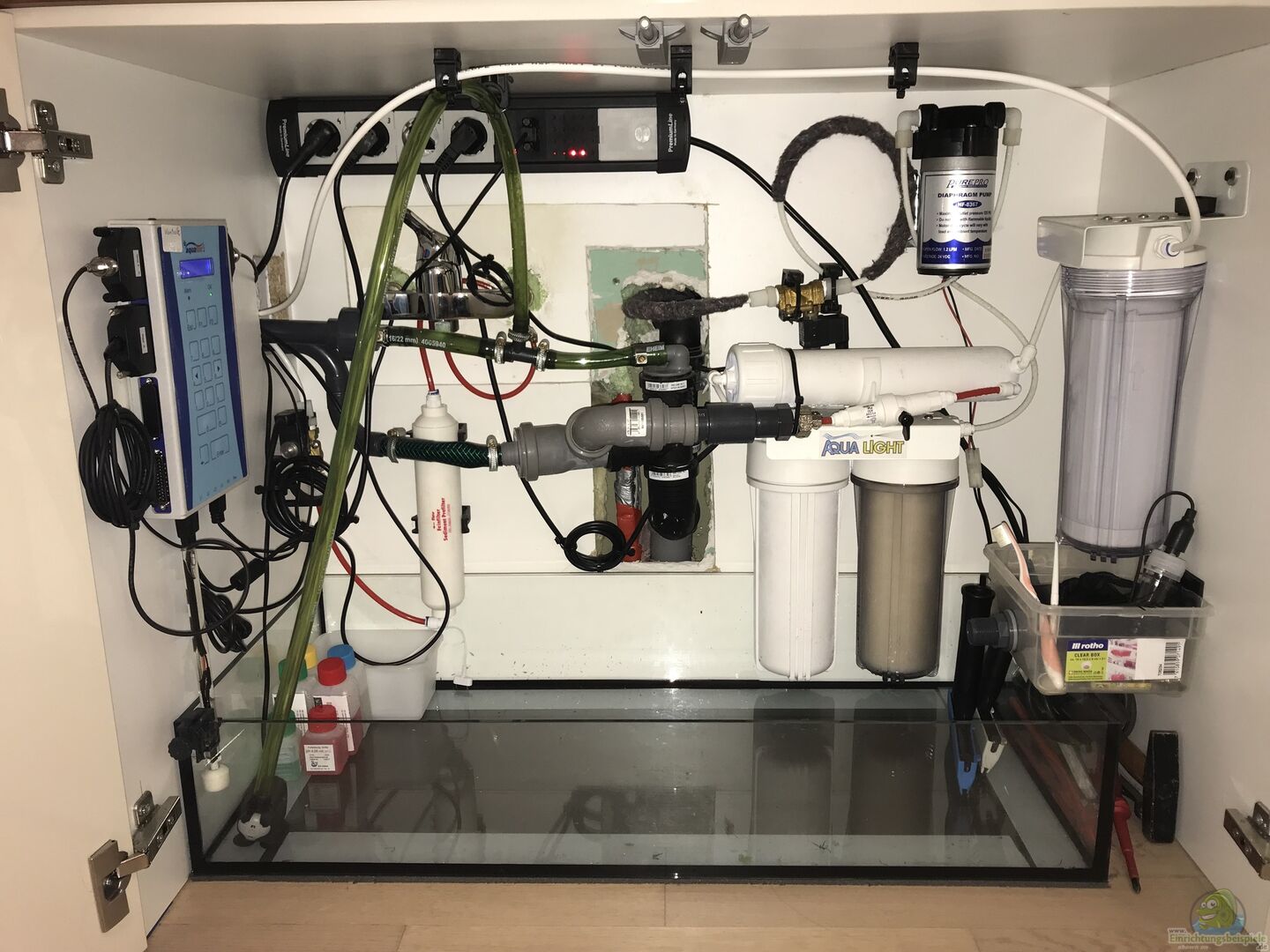 Osmoseanlage Aqualight 380L/Tag, Aquamedic Entmineralsierungsfilter, Aquamedic Dosierpumpe mit vier Pumpen, IKS AQ Computer mit PH-/Temperatursonde, Lichtsteuerung, Pegelsteuerung CO2 Flaschen 3 Stück 2kg, Oberflächenabsauger (nur bei Bedarf zugeschaltet)