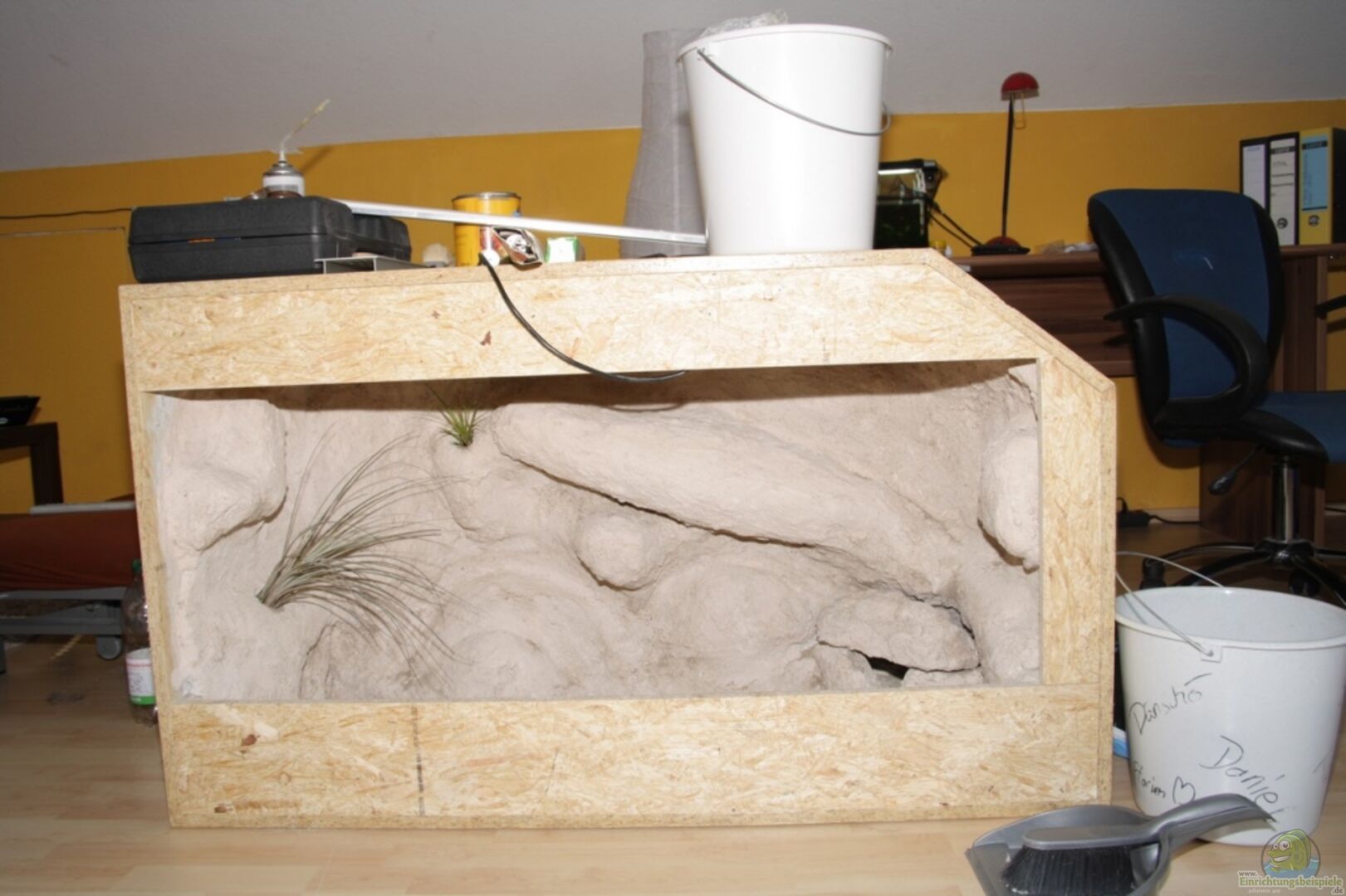 Kein Aquarium! Aber ein kleiner Vorschlag von mir zur Ergänzung der ´Einrichtungsbeispiele´. Das Becken ist komplett mit Speichelechtem Lack (innen) lackiert, um Feuchtigkeitseinzug ins Holz zu vermeiden.