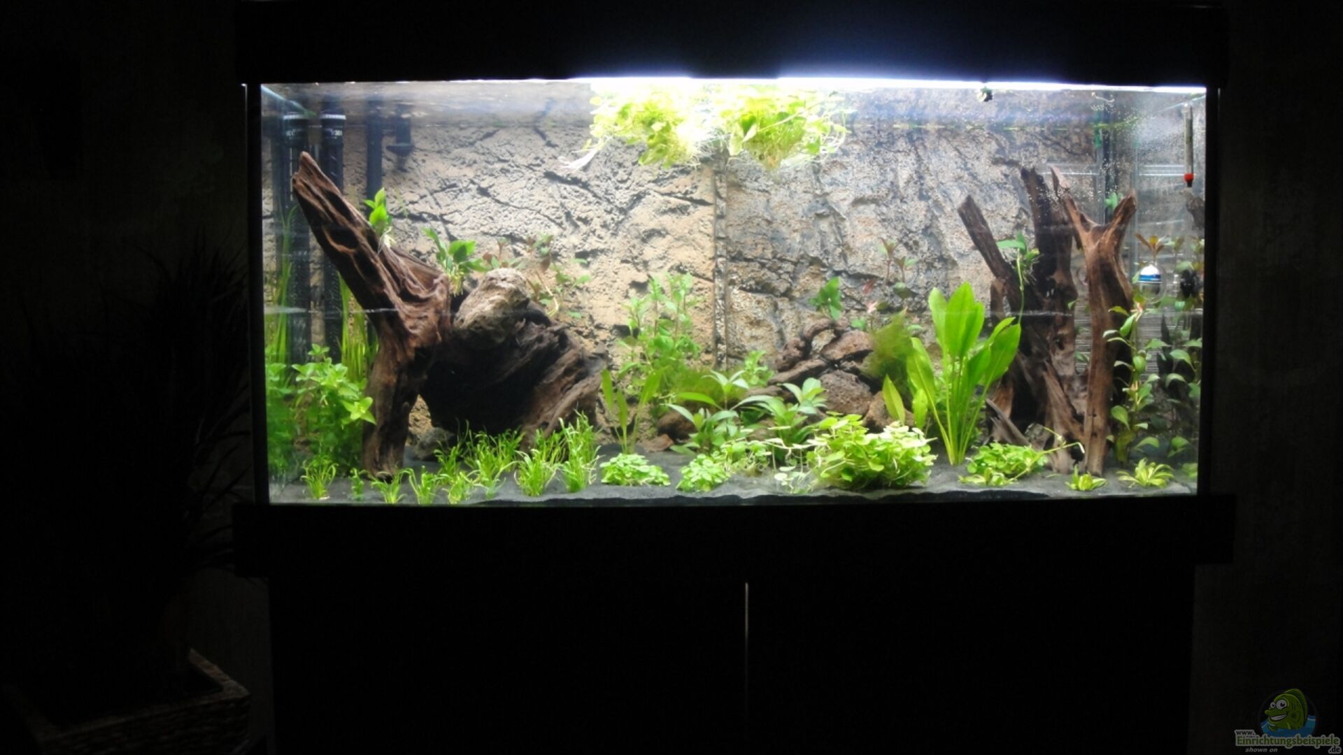 Komplett Aquarium von Meduza6, Unterschrank Wenge mit extra dicken Platten 28mm in Schreinerqualität, 2 Türen mit Klicksystem, Kiesblende in schwarz. Abdeckung Aluminium mit Dekorstreifen in Wenge. Becken 10mm Floatglas mit Druckverklebung und 10 Jahren Garantie, 2x T5 Leuchtbalken "Aqua" mit elektronischem Vorschaltgerät.