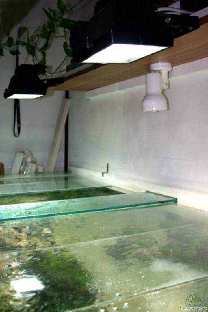 Ozonanlage: Das Ozon wird in einem alten Meerwasserabschäumer eingeleitet. Das Wasser kommt direkt aus der Klarwasserkammer des Hauptfilters, und läuft aus dem Abschäumer in die erste Kammer des Filters wieder zurück. So entsteht nur ein Filterinterner Kreislauf, das Ozon kommt nie direkt ins Aquarium. Der Ozonisator wird über ein Redoxpotential-Messgerät gesteuert. Den Wert halte ich zwischen 270 ??? 330 mV. Regelheizstäbe (300Watt/150Watt). Angeschlossen an ein Temperatur-Regelgerät [...]