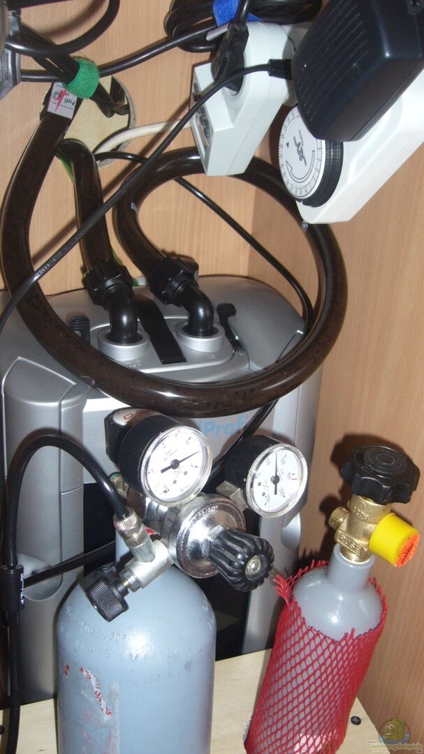 Co2 Anlage mit Dennerle Nachabschaltung und JBL Co2 Vario Reaktor 2 kg Flasche und 0, 5 kg Reserve Jäger 150 Watt Heizstab Gembird Steckdosenleiste zm Steuern der Beleuchtung und der Nachtabschaltung