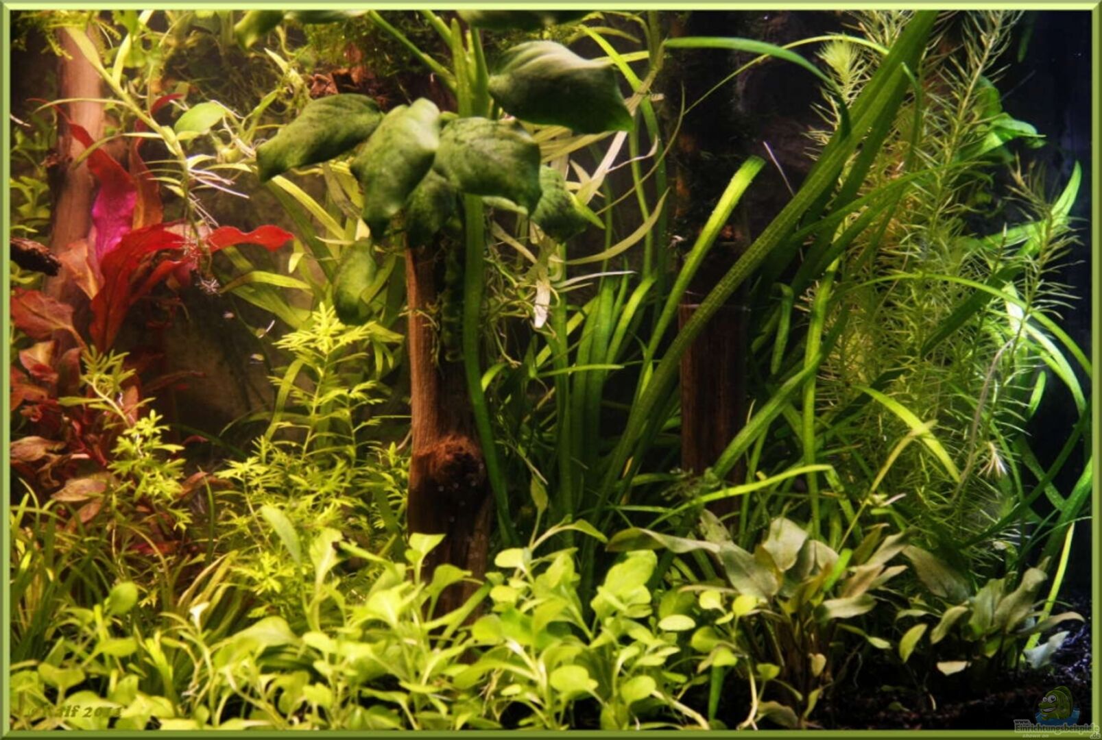Es handelt sich hier um ein Standrdbecken mit gewölbter Front, gefertigt aus 4 mm Glas, verklebt mit schwarzem Silikon. In das Becken habe ich eine 3D-Rückwand in Stein/Wurzel-Optik eingeklebt, deren Tiefe im Becken beträgt 2 - 8 cm. Im oberen Bereich der Rückwand wurde eine kleine Pumpe eingeklebt, da der Raum hinter der Wand als Filter genutzt wird. Deshalb wurde die Rückwand einseitig mit Silikon verklebt, steht unten auf 2 Silikonstützen und ist oben an einer Stelle links fixiert. Links [...]