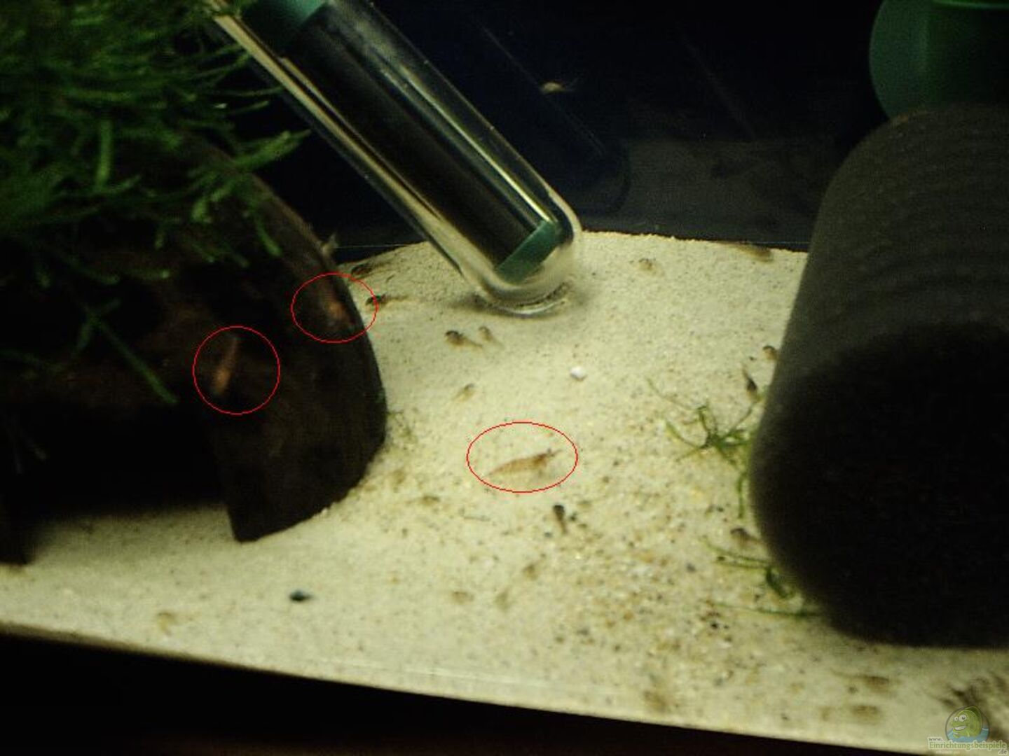 am 09.11.05 geschlüpft 30-40 Corydoras aeneus (5-6mm gross) 10 kleine Neocaridina denticulata ´red cherry´