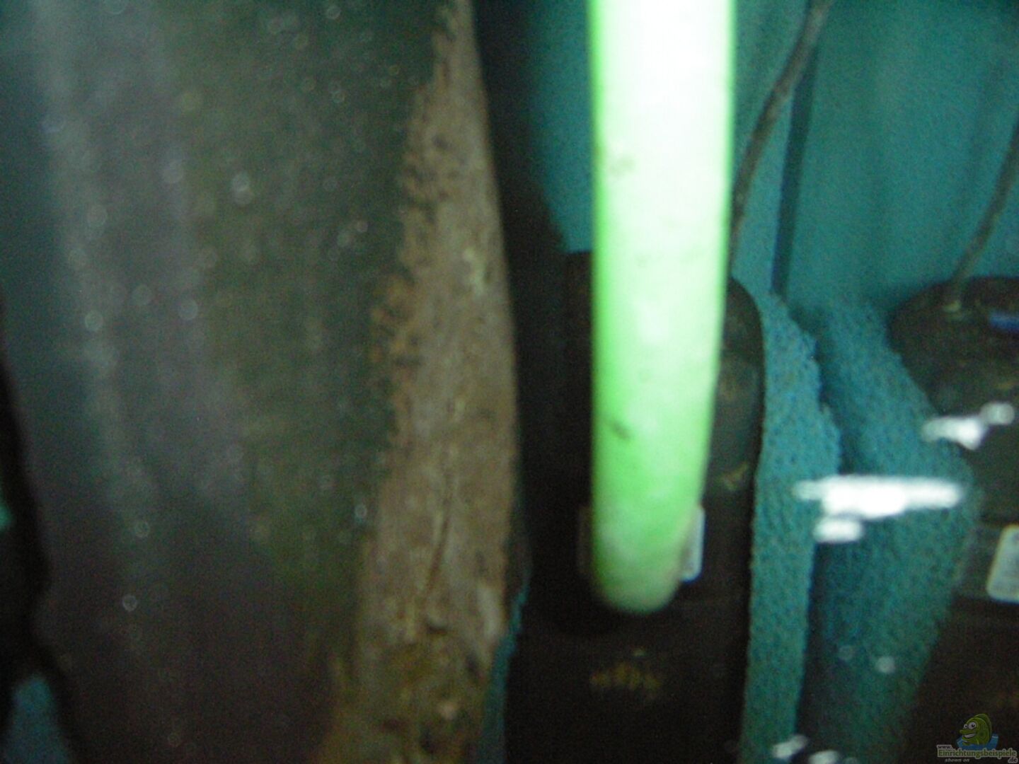 Für weitere Strömung im Becken sorgt ferner eine Tunze Nanostream mit 4500l/h. Hört sich jetzt recht viel an, durch den weichen Strahl der Pumpe ist es aber nicht zuviel für die Beckengrö??e. Den kleinen scheint es jedenfallzu gefallen sich in die Stömung zu stellen oder sich von ihr durchs Becken treiben zu lassen. Geheizt wird über einen Jäger Heizstab mit 200 Watt