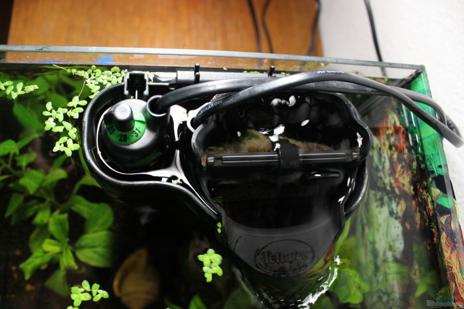 Stabheizer im Innenfilter integriert; HT 50 von Tetratec Reflektor für Leuchtstoffröhre, damit dass meiste Licht ins Aquarium fällt
