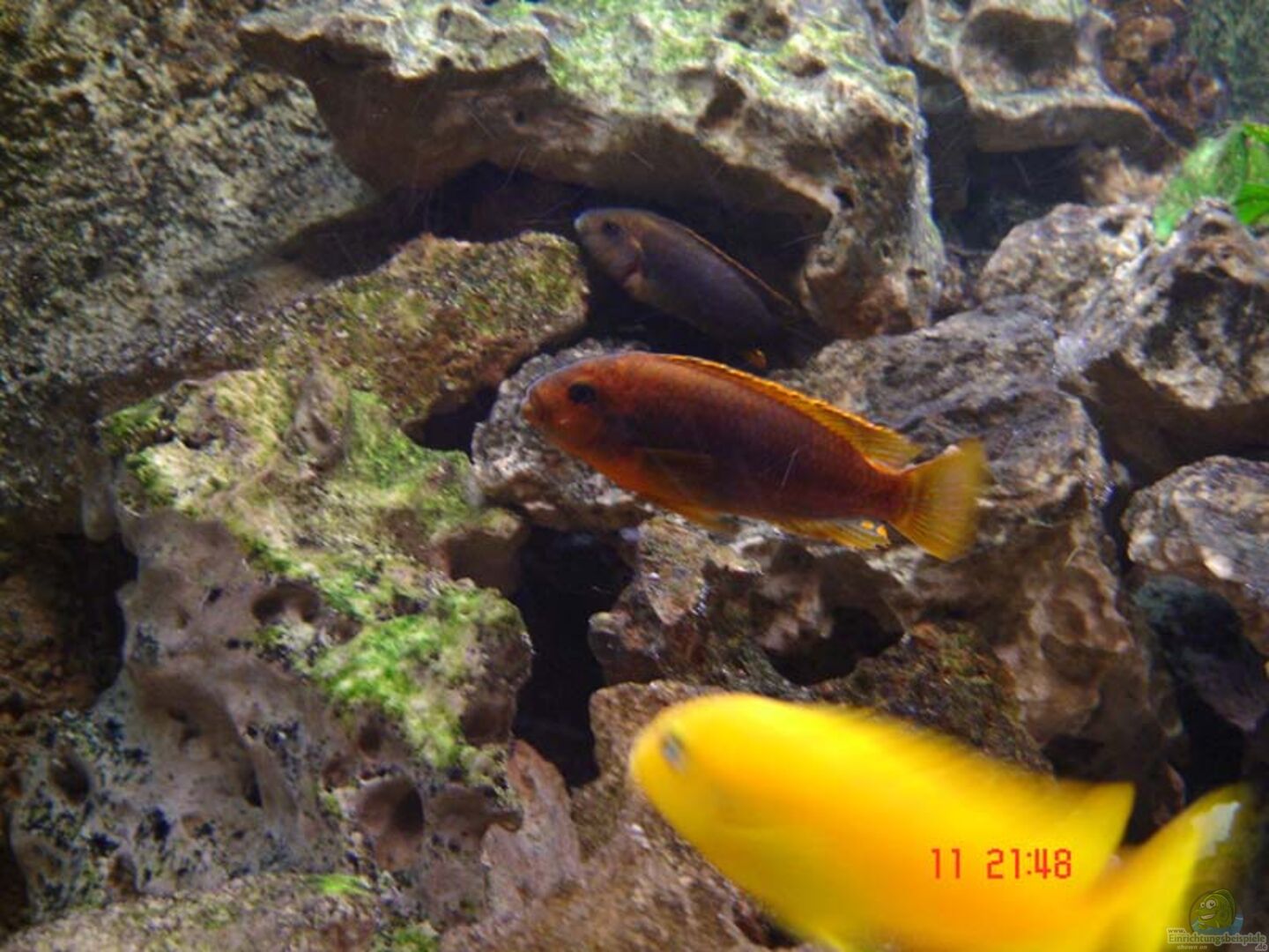 Pseudotropheus Fainzliberi Nkhata OB-Morphe (1/2) Pseudotropheus Crabro (1/1) Pseudotropheus Callainos pearl White (1/2) Pseudotropheus Saulosi (1/2) Pseudotropheus Polit (1/2) Cynotilapia Lion WF (1/1) Iodotropheus Sprengerae (1/1) Fiederbartwels (2 Syn.euperus 1?/1?) Nachwuchs: 2 Cynotilapia Lion (F1), evtl. 1/1 3 Pseudotropheus Saulosi, evtl. 1/1 und ?