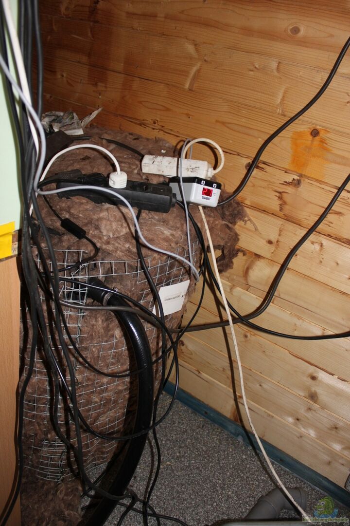 2 Heitzstäbe für 1000l ( laufen über 2 Stromkreise , falls der strom mal ausfällt. 1 UV Lampe 1 strömungspumpe ( geht abends und morgen für 5 min einmal an. )