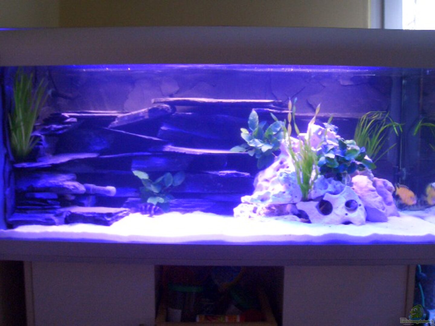 Rückwand eigenbau aus ca. 130 kg schwarzer Bruchschiefer wurden auf zuvor verklebte und mit schieferfarbenem acryllack gestrichenem styrodurplatten geklebt. mit Aquariumsilikon verklebt und geschichtet.daraus ergeben sich jede menge Höhlen und Unterstände