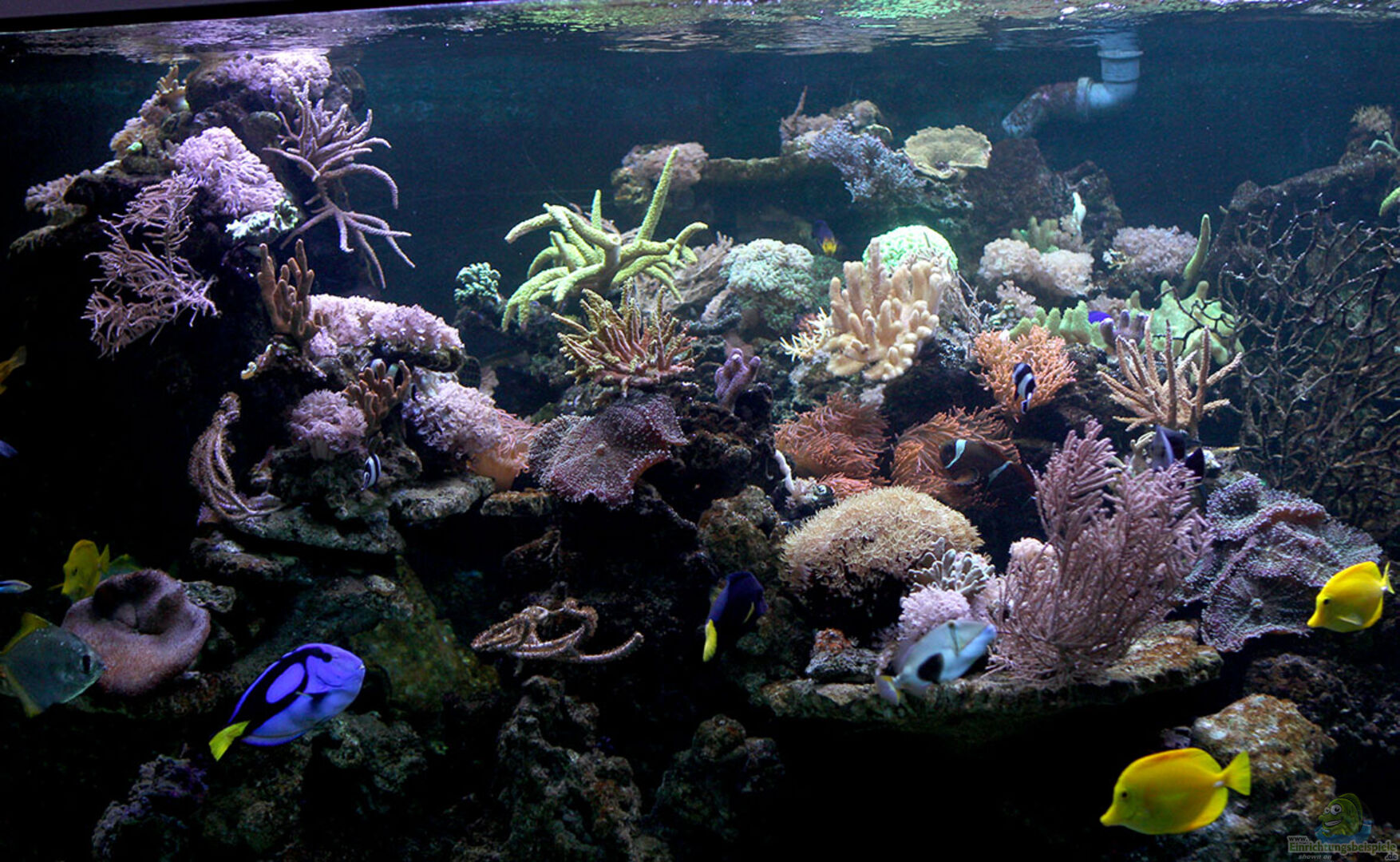 Betonaquarium, ein halbes Achteck, mit drei großen Sichtscheiben, 1x 179x134cm (40mm) und 2x 106x134cm (25mm) das Wasservolumen wurde etwas verkleinert, das Becken ist nicht vollständig gefüllt, der Grund liegt kurz um in den Erhaltungskosten für laufend gute Wasserqualität ;)