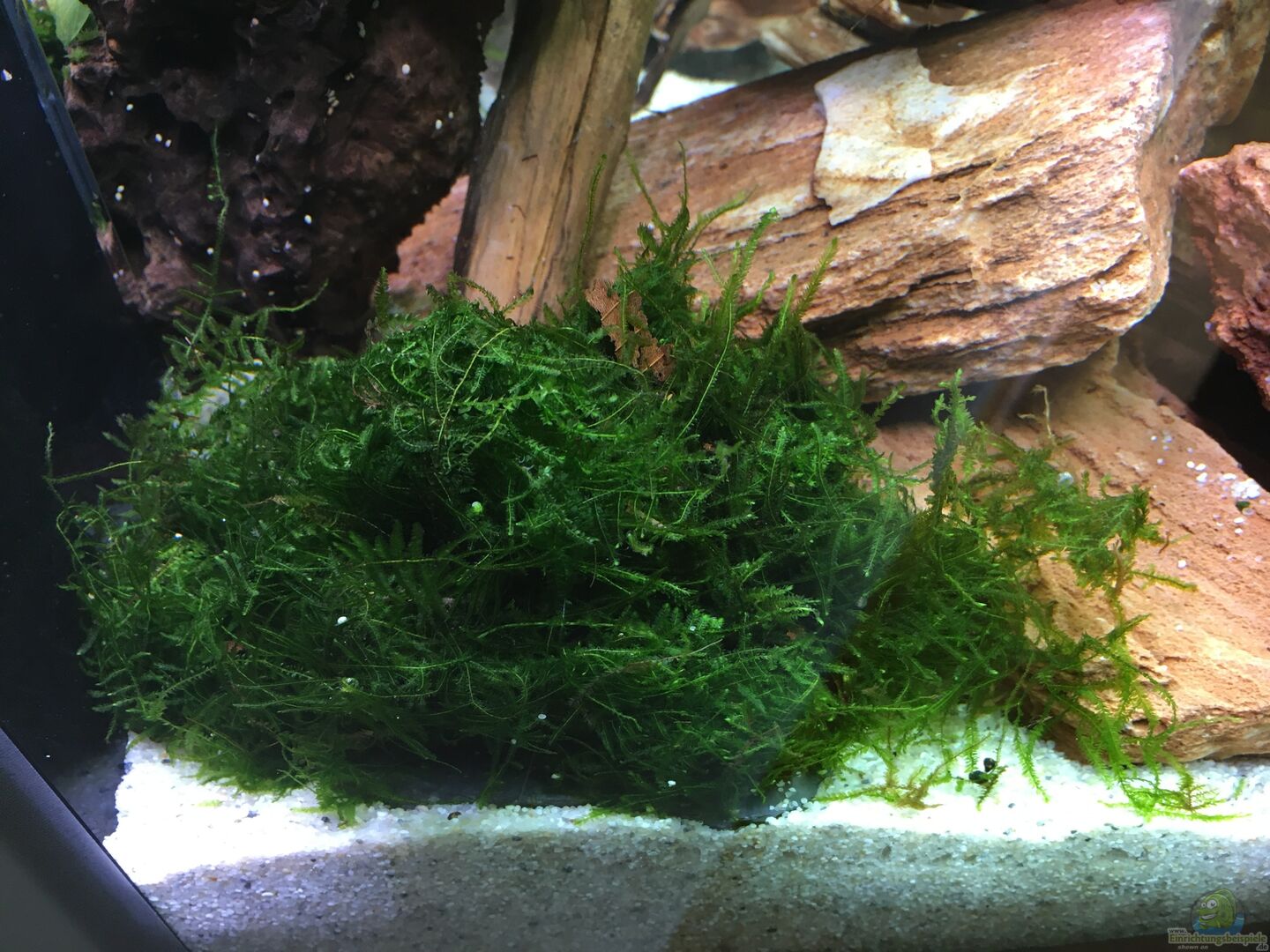 Hier habe ich mich für Moose und Aufsitzerpflanzen entschieden, Ausnahme, eine Amazonas Schwertpflanze.Das Becken ist mit Windelov-Javafarn, Needle Leaf Javafarn, Spikymoos, Christmasmoos und Javamoos bepflanzt. Es sind zwei weitere Sorten dazu gekommen, der kleinohrige Büschelfarn und der südamerikanische Froschbiss, beides Schwimmpflanzen.3 sogenannte Moosbälle, eigentlich eine Algenart die fast überall auf der Welt im Sü?? und Brackwasser vorkommt.