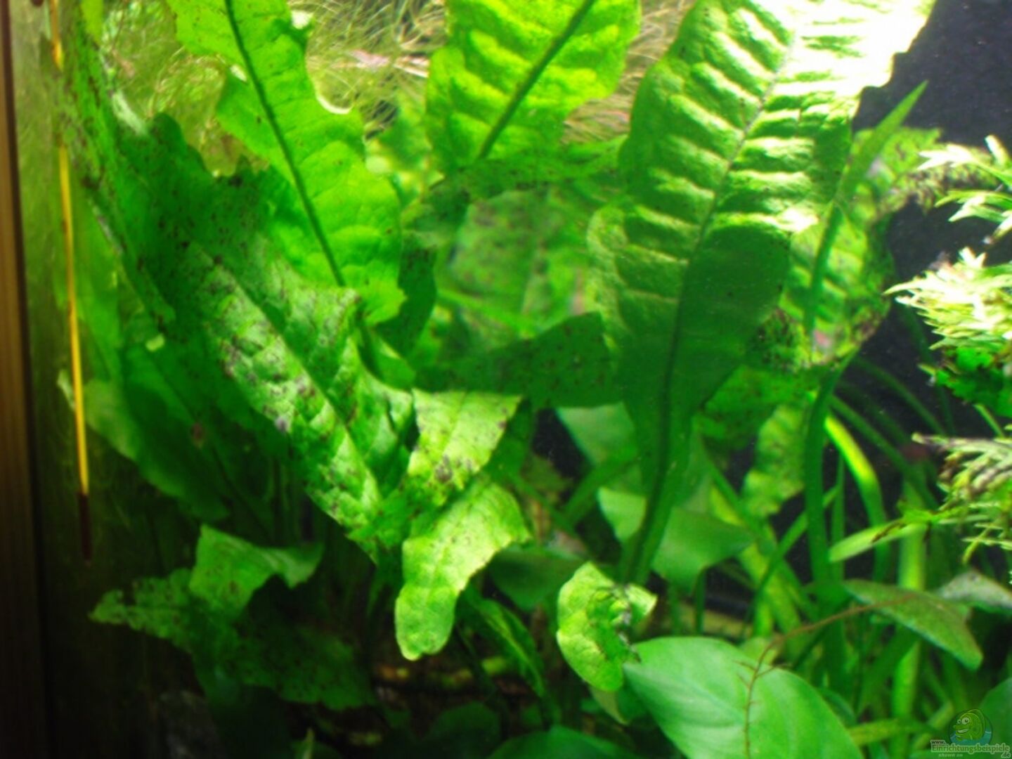 Javafarn Anubia bateri Microsorum pteropus Windelow Vallisneria americana an der Rückwand entlang Cryptocorine Nevillii im Vordergrund Mooskugel Düngung: tagliche Dosis Easy Carbo und Flüssigdünger Elos Phase 1