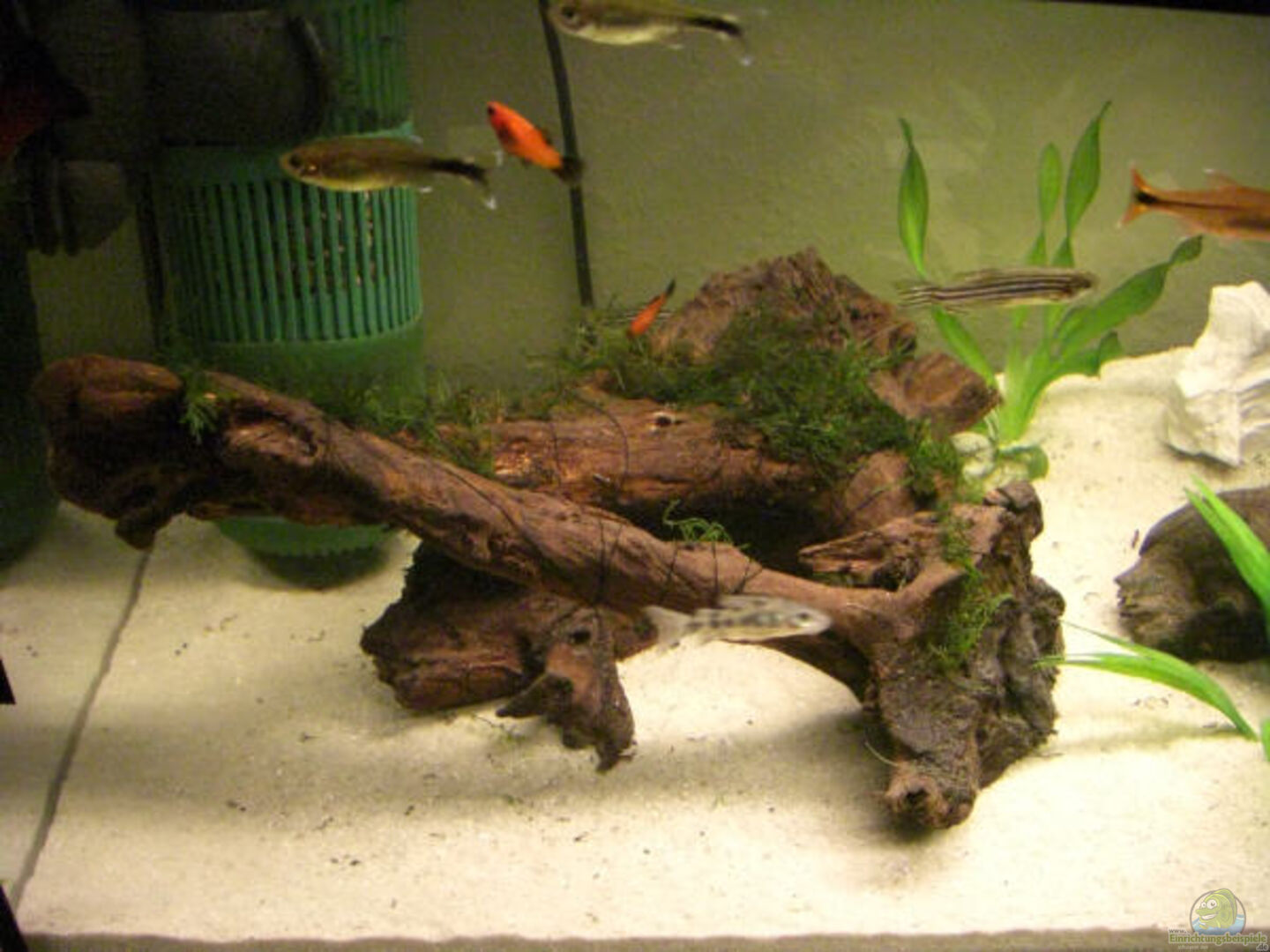 -Javamoos (Vasicularia dubyana) -Teichlebermoos (Riccia fluitans) !!!ACHTUNG!!! Hatte das Moos mit einem Haarnetz am Stein befestigt. Ein Zwergschilderwelz hing dann darin fest wegen seiner rauen Beborstung und hat sich verlezt.Nach einer Woche erholung aber wieder alles in Ordnung. -Echonodorus Netz entfernt und von Dennerle kleine Pflanzenkästen verwendet. -Kleine Schrauben-Vallisnerie (Vallisneria tortifolia) Düngung: Dennerle -CO2 Dünnung - Deponit Nutriballs -V30 Complete -F15 [...]
