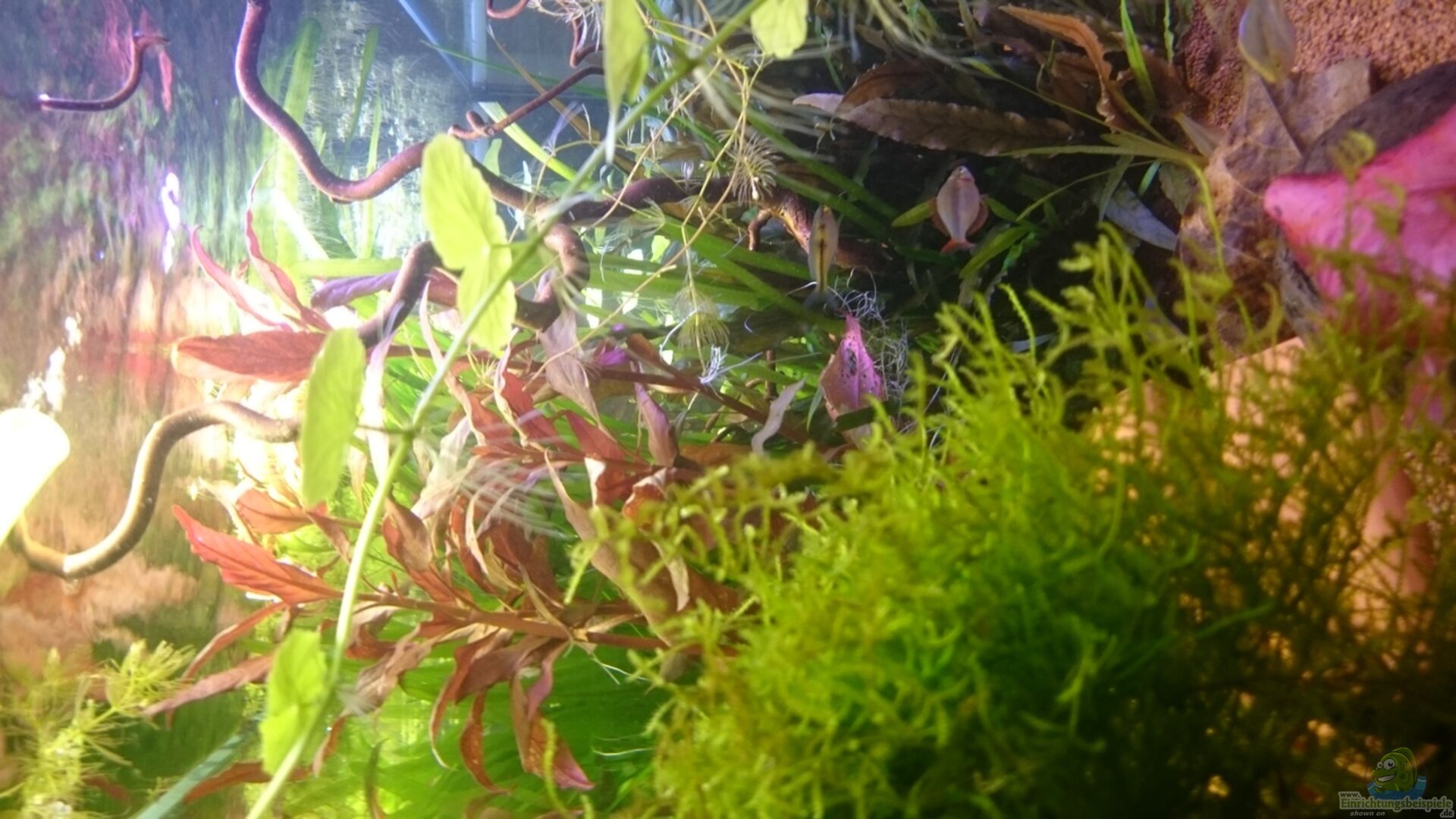 Juwel Rio 240 (wei??) Schwarze Rückwandfolie Juwel digital Thermometer Standard Juwel Bioflow Filter entfernt und durch Eheim Experience 350 Au??enfilter ersetzt. Bio CO2 Anlage Wöchentliche Düngung der Pflanzen mit Easy-Life Profito und Ferro Tägliche Zugabe von Easy-Carbo Wöchentliche Zugabe von Catappa-X und echten Seemandelbaumblättern.