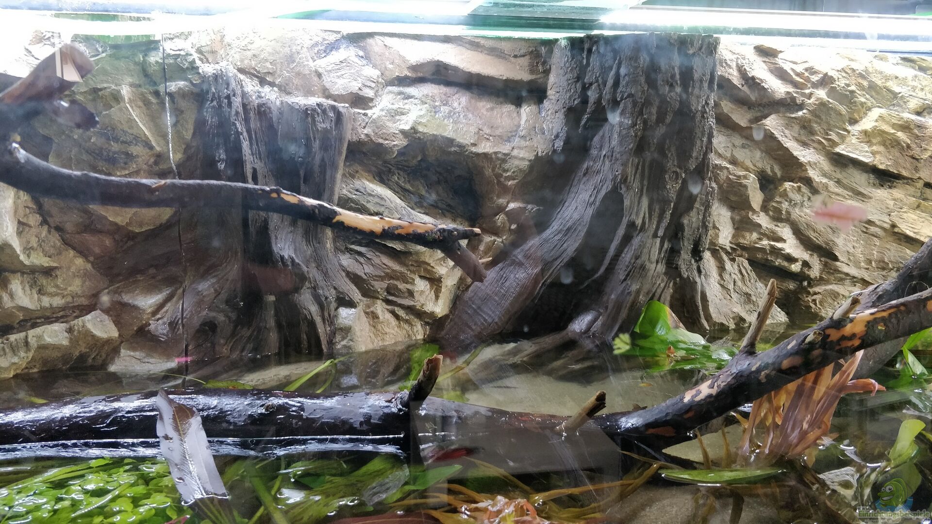2 x 40 mm Bohrung rechts oben auf der Seite für Ablauf und Notüberlauf, automatischer Wasserwechsel ca 50L täglich, mit Überlauf vom 160L Filterbecken. Unter dem großen Becken ist jetzt ein kleines Aufzuchtbecken. Wird auch über den großen Filter betrieben.
