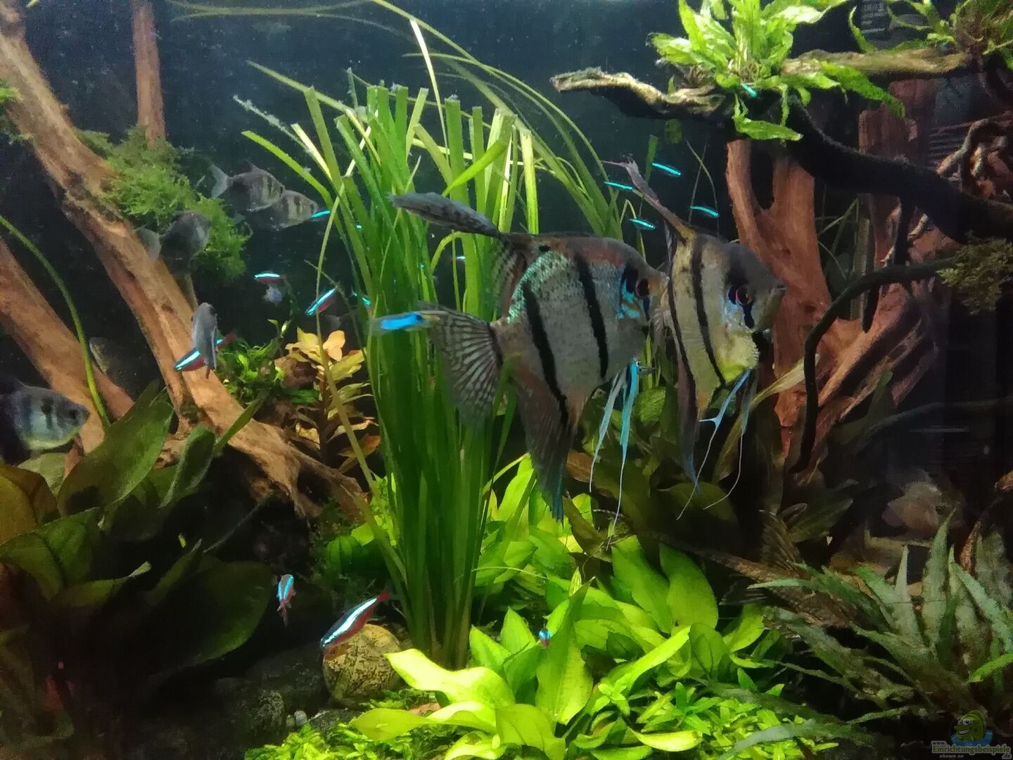 5 Stck. Dantum-Skalare - Männchen, Kreuzung zwischen Peru-Altum und echtem Altum -! Soll es angeblich sein, schätze aber es sind eher normale Peru-Skalare, so wie sich sich jetzt nach 4 Jahren entwickelt haben jetzt nach knapp 6 Jahren sind sie schon grö??er geworden, als übliche Peru-Altums, schätze es ist wirklich eine Kreuzung mit dem echtem Altum. Die Männchen sind echt friedlich, bis auf kleine Nasenstuber ist alles ruhig. je 2 Männchen haben paarähnliche Verhaltensweisen angelegt, [...]