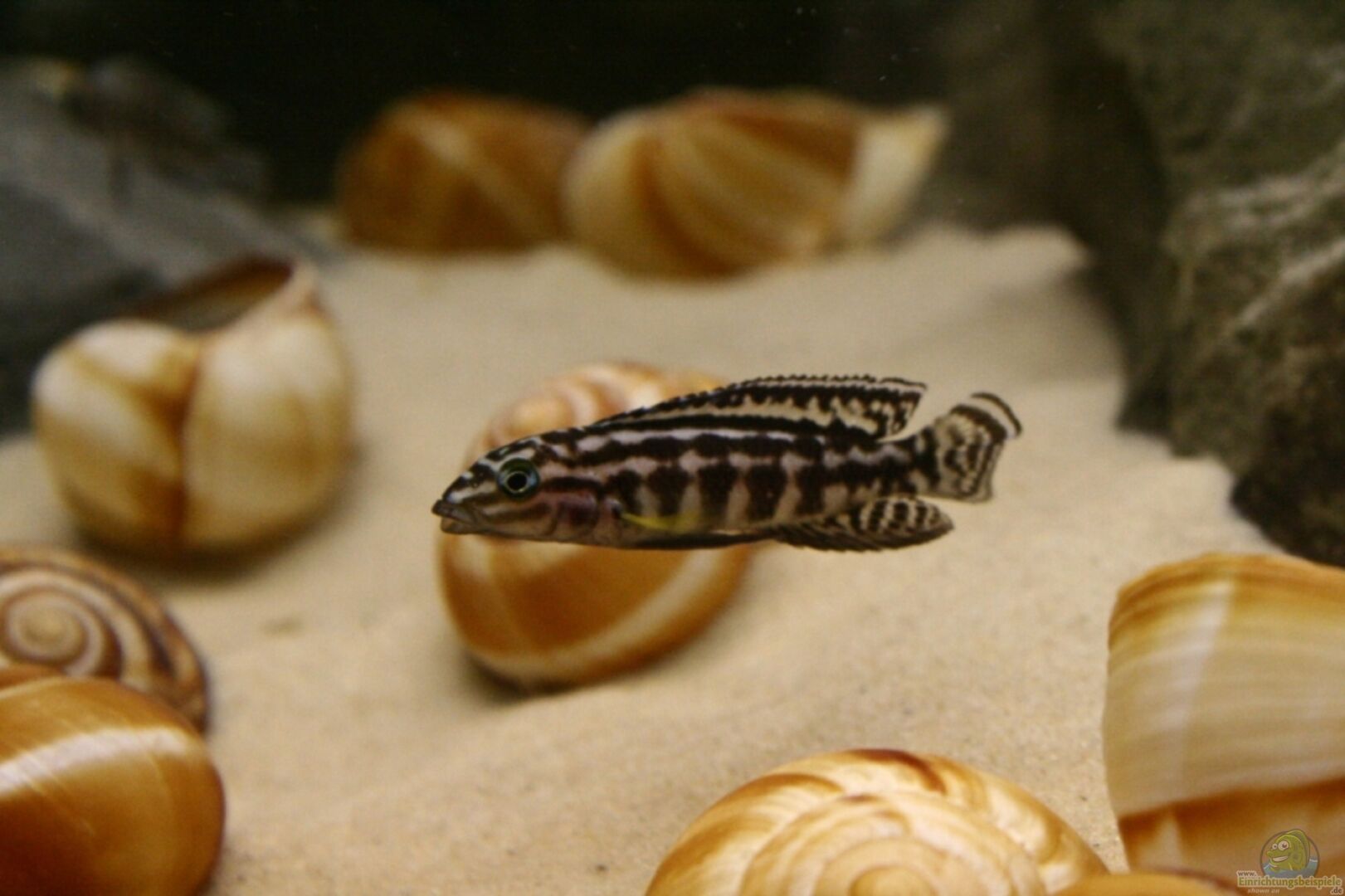 Hier findest du alle wichtigen Infos und viele Beispiele für die Einrichtung eines Aquariums für Julidochromis regani (Vierstreifen-Schlankcichlide).