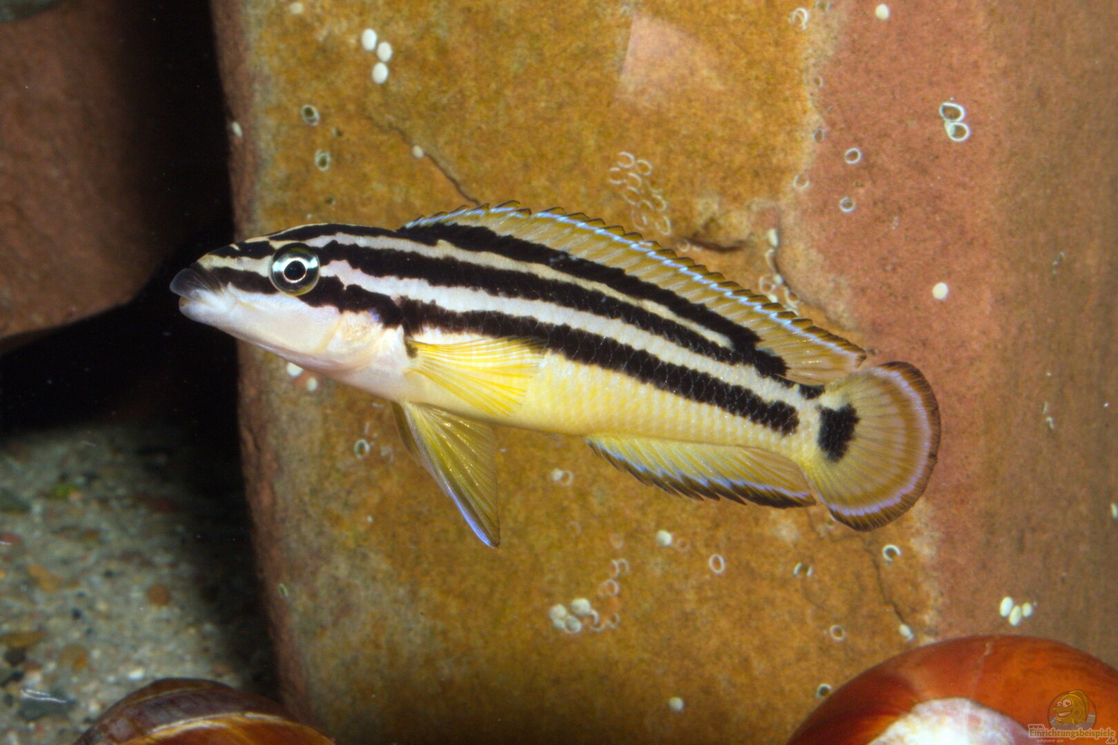 Hier findest du alle wichtigen Infos zur Haltung und Beispiele, wie du dein Becken für Gelber Schlankcichlide (Julidochromis ornatus) einrichten kannst.