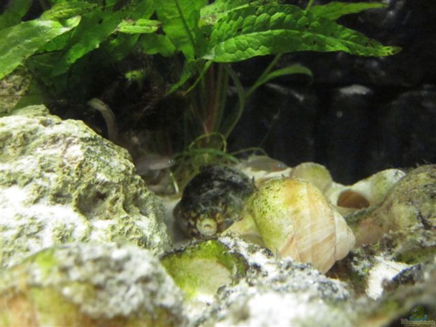 Neolamprologus multifasciatus (1m/3w) - Schneckenbarsch 2 ältere Jungtiere, Geschlecht unbekannt Turmdeckelschnecken und ein paar Blasenschnecken