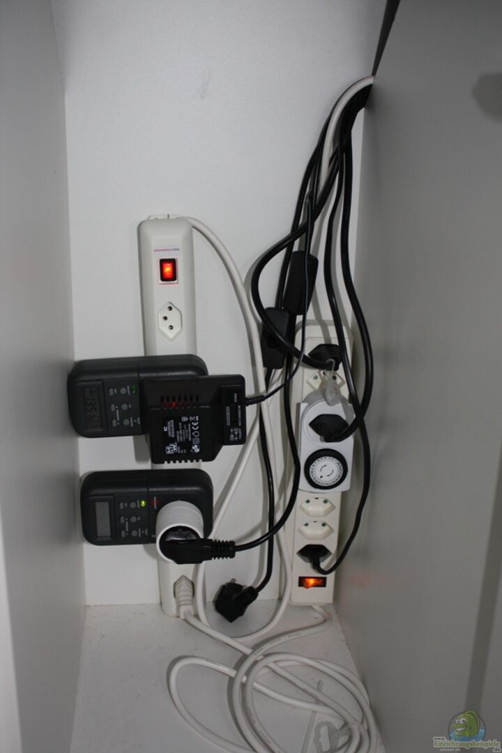 1 Tunze Turbelle stream 6065, Strömungsleistung 6500l/h, läuft mit Unterbrechungen ca. 14 Stunden/Tag Mehrere Zeitschaltuhren, alle mit Funkuhr, dadurch exakte Schaltzeiten und automatische Umstellung Sommer/Winterzeit