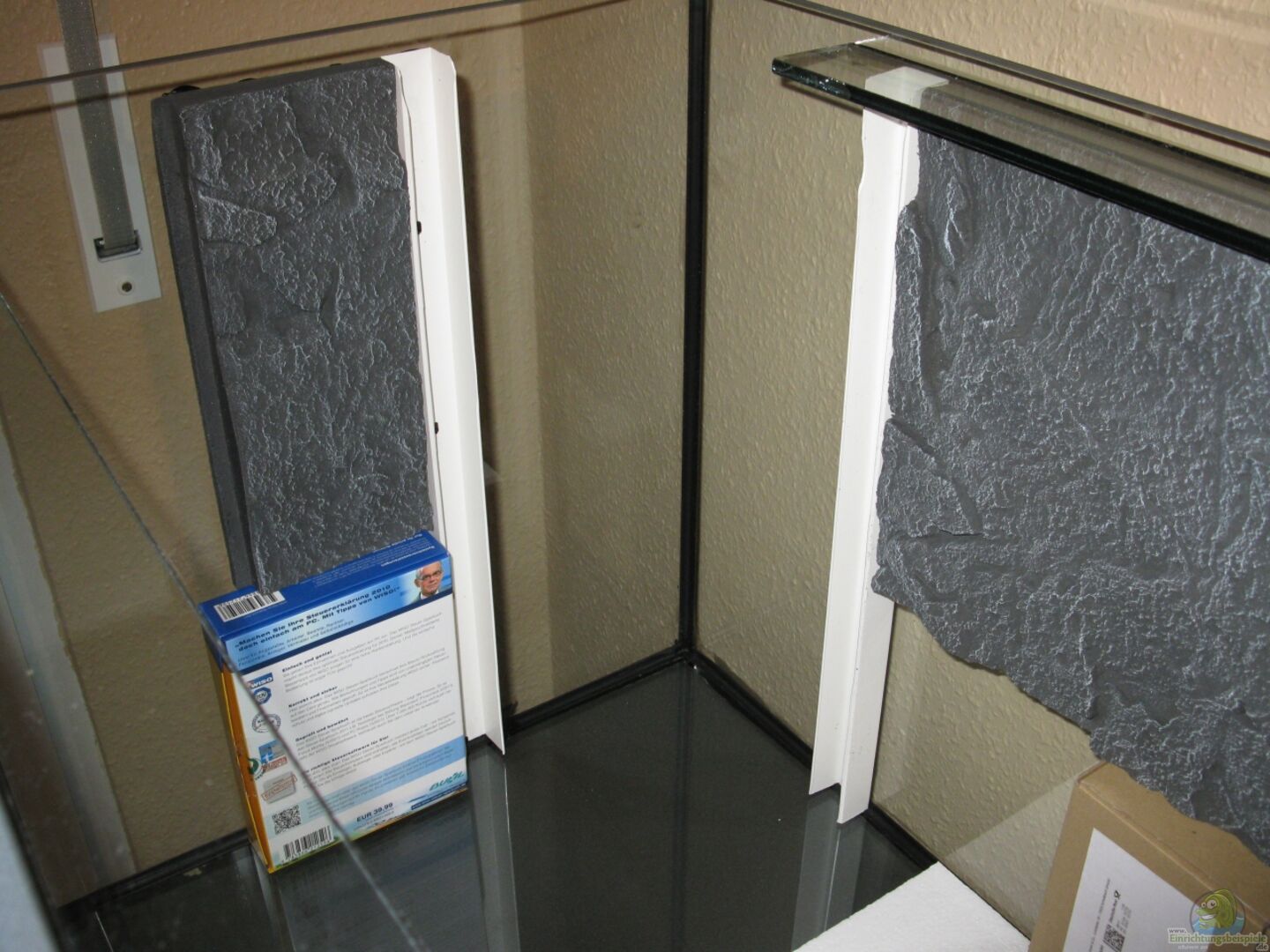 Aquarium: Zac: Aquarium 130x50x50cm, 325l, 10mm. Die Kanten sind diamantgeschliffen und sicherheitsverklebt. Zwischen dem Aquarium und der Siebdruckplatte ist eine 5mm dicke Aquariumunterlage. Unterbau: Selbstgebauter Unterbau aus Y-Tong Steinen und zwei 21mm dicken Siebdruckplatten. Zum Ausgleichen von Unebenheiten sind zwischen den Y-Tong Steinen, Siebdruckplatten und dem Fu??boden 5mm starke Selitac Laminatunterlagen. Die Y-Tong Steine wurden hochkant mit Fliesenkleber verklebt. Damit [...]